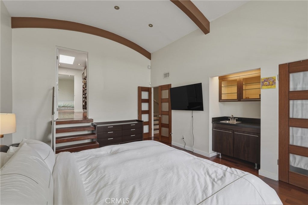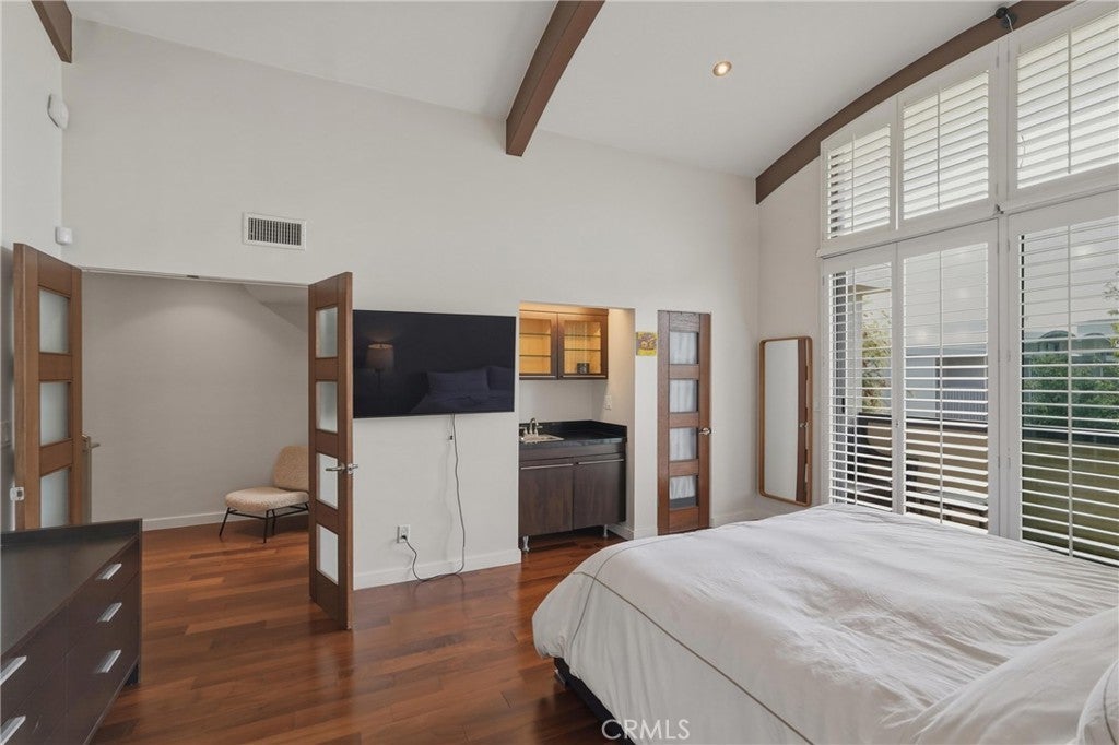 Offer Fell Through ! Best priced 3-Bedroom in the community ! Expertly re-imagined after the renovation ! One of a kind ! Must see ! Over $100K in Upgrades! Walk to the beach ! This rare, completely remodeled 3-bedroom, 2.5-bath extraordinary residence is the model home of this exclusive community, and located in a cul-de-sac that offers direct pool and garden views from both the private balcony and patio. Upon entry, you’re welcomed by an elegant, expansive formal entryway leading into a grand living space centered around a stunning fireplace over beautiful hardwood floors, soaring ceilings, recessed lighting, & floor-to-ceiling windows and doors flood the home with natural light, creating a seamless indoor-outdoor lifestyle. Step onto the private deck overlooking the sparkling pool and lush gardens with pool views perfect for entertaining or relaxing.The chef’s kitchen has been doubled in size compared to standard community models. Designed for both function and style, it features top-of-the-line Thermador stainless steel appliances, a large center island with breakfast bar, stone countertops, custom cabinetry with built-ins, pot-and-pan drawers, a spacious pantry & abundant storage. The kitchen opens to dining area, with walk-in pantry and office space. Primary suite is a true retreat, boasting soaring beamed ceilings, a private balcony with serene pool views & an oversized custom walk-in closet. The luxurious primary bath offers a spa-like escape with a step-in steam shower, custom countertops, & humidity controls. The second & third bedrooms are generously sized, light-filled & served by a beautifully appointed full bath & accessible by the extra-wide floating staircase.Additional highlights include a 3-car garage with EV charging, plus A/C, central heating, Lynx BBQ & an oversized bonus room ideal for storage or flexible use. Unlike other floorplans in the community, all hallways & staircases have been expanded & widened, enhancing both flow & comfort. Additionally, this home has extra insulation.Located in one of Marina del Rey’s most sought-after communities, HOA includes water, grounds maintenance, heated pool, spa, controlled entry, and private security. Enjoy walkable access to Waterside Plaza, theaters, premier dining, shopping, grocery stores, parks, beach, bike path to Manhattan Beach & the new Cedars Sinai hospital—right in the heart of Silicon Beach. Walking distance to the top-rated Short Elementary​​‌​​​​‌​​‌‌​​‌​​​‌‌​​​​​​‌‌​‌‌​​‌​​​‌‌​ School.