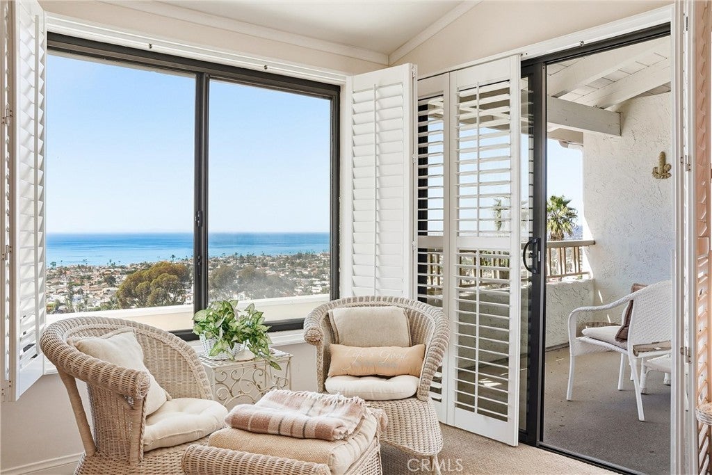 Panoramic Ocean-View Townhome | Fully Furnished | Seaview Townhomes Enjoy breathtaking panoramic ocean views stretching from San Diego to Palos Verdes, with Catalina Island and San Clemente Island directly in sight. This fully furnished 3-bedroom, 3.5-bath townhome is ideally located in the highly desirable Seaview Townhomes community. Each bedroom features its own private en-suite bathroom, offering comfort and privacy throughout. The main level includes a convenient guest half bath, a spacious living room with a fireplace, and a beautifully remodeled kitchen. The primary bedroom also boasts its own fireplace, creating a warm and inviting retreat. Two of the three bedrooms enjoy stunning ocean views. The attached two-car garage features epoxy floors and is equipped with a washer and dryer, heater, water softener, electric car charger, and water heater. Seaview Townhomes residents enjoy access to a beautifully enclosed pool and spa, along with atennis court, all within a well-maintained community. A rare opportunity to live with sweeping ocean views, upscale amenities, and turnkey convenience.