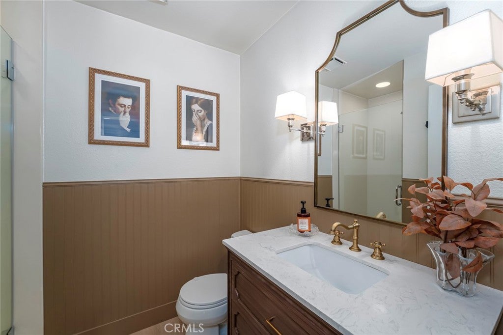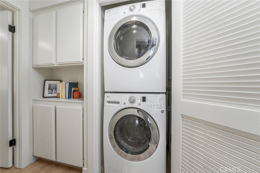 Welcome to this beautifully upgraded upper-level corner condo in the desirable Brisa Del Lago II community. With soaring vaulted ceilings and an open-concept layout, this home is bathed in natural light, creating a warm and inviting atmosphere. The newly remodeled kitchen is a showstopper—featuring quartz countertops, a custom tile backsplash, stainless steel appliances, floating shelves, and extended ceiling-height cabinetry. A removed wall and raised ceiling enhance the sense of space, while a window near the sink brings in even more light. The kitchen flows seamlessly into the dining area, perfect for entertaining. Luxury vinyl plank flooring runs throughout the entire living areas, complementing the cozy fireplace and ceiling fan in the spacious living room. Step through the sliding glass door to a private balcony with turf—ideal for relaxing or enjoying your morning coffee. The dining area boasts custom built-in bench seating with storage and designer lighting. Both bedrooms include ceiling fans, with the primary suite offering a walk-in closet with stylish barn doors and a fully updated ensuite bath featuring a new fiberglass tub/shower combo, dual vanities with quartz counters, and modern vessel sinks. The secondary bedroom, currently used as an office, includes a mirrored wardrobe and easy access to a second updated full bath. Additional highlights include an in-unit stackable washer and dryer, a detached one-car garage with opener, 2nd parking spot is a covered carport, and access to the community pool, spa, and recreation area. Located just moments from Rancho Santa Margarita Lake, Trabuco Mesa Park, Monte Vista Park, and O’Neill Regional Park—with year-round events, shopping, dining, and entertainment nearby—this home offers the perfect blend of comfort, style, and convenience.