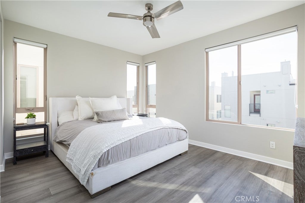 Experience elevated coastal living in this light-filled, multi-level residence that blends modern design with effortless beachside appeal. Thoughtfully updated throughout, the home offers a clean, contemporary aesthetic paired with a highly functional layout designed for everyday living and entertaining alike. The main living level features an open-concept floor plan where the living room flows seamlessly to a private balcony, inviting ocean breezes and abundant natural light. A conveniently located powder room serves guests, while the adjacent kitchen and dining area anchor the space with both style and practicality. The gourmet kitchen is outfitted with Italian Bertazzoni appliances and sleek quartz countertops, making it equally suited for casual meals and elevated entertaining. Three ensuite bedrooms provide comfort and privacy, each offering its own serene retreat. The lower-level bedroom opens directly to a private patio, creating an ideal indoor-outdoor escape. At the top of the home, the rooftop deck delivers a true showpiece — complete with an outdoor kitchen and sweeping panoramic views, perfect for hosting gatherings or unwinding beneath the evening sky. Ideally located near freeways, beaches, and a curated selection of coffee shops and restaurants, this home offers the best of beach city living with convenience, style, and flexibility.