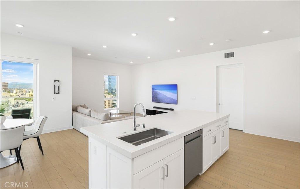 Perched on the top-floor corner with a wraparound balcony, this Lexington Plan 4 penthouse steals the show with unobstructed panoramic views—mountains by day, dazzling city lights by night, all from the privacy of your own retreat. With no neighbors above, this beautifully upgraded home offers an elevated living experience like no other. The open-concept layout features soaring ceilings, floor-to-ceiling windows, and abundant natural light enhanced by designer motorized shades. Beautiful hard-surface flooring flows throughout, complemented by premium upgrades that elevate the entire space. The chef-inspired kitchen boasts GE Monogram appliances, quartz countertops, sleek cabinetry, and a generous island—perfect for entertaining or everyday living. The primary suite is a sanctuary with a walk-in closet, dual vanities, freestanding soaking tub, and spa-style shower. The secondary bedroom offers its own en-suite bath and equally impressive views. Residents enjoy resort-style amenities including saltwater pools, spas, a fitness and yoga center, sports courts, outdoor cabanas, BBQ areas, EV charging stations, and an elegant clubhouse. This Lexington building also features a private gym on the main level. Ideally located near Fashion Island, South Coast Plaza, UCI, John Wayne Airport, and Newport Beach, this penthouse epitomizes Irvine luxury living.