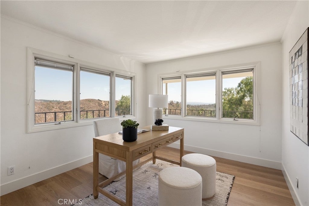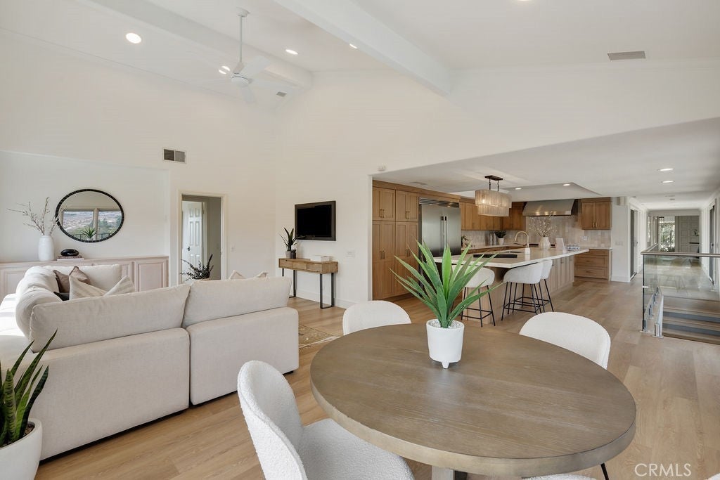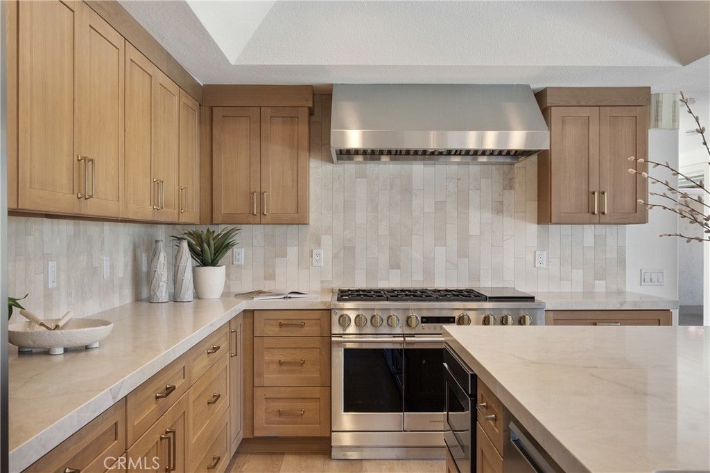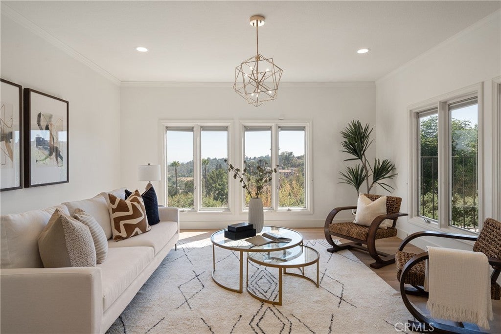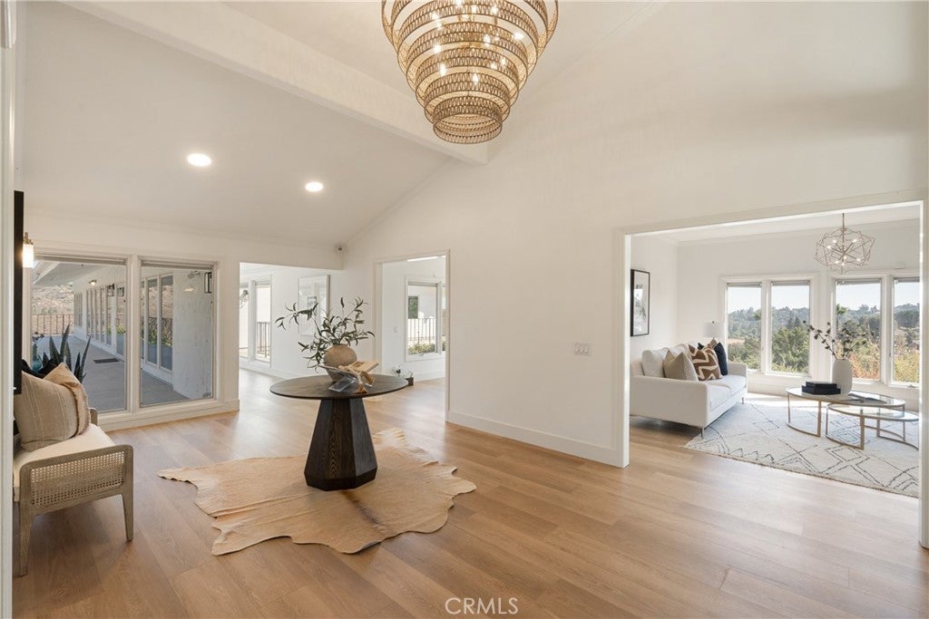 A Private Blufftop Sanctuary with Panoramic Views. From the moment you step through the front door, the view takes your breath away - and it never lets go. Every room in this home captures a different frame of the surrounding beauty. Tucked behind private gates in Cowan Heights, this distinctive property offers sweeping, unobstructed views from every room- from Peter’s Canyon to the coastline of Fashion Island. Recently updated with designer finishes, it blends custom architecture with a calming, on-trend interior palette. Perched on a blufftop lot, the grounds feature a saltwater pool and spa, new turf, and garden spaces ideal for entertaining or unwinding. A long driveway provides generous parking and leads to a three-car attached garage. Inside, a dramatic vaulted foyer opens to multiple light-filled living areas and a fully remodeled chef’s kitchen with custom oak cabinetry, quartz countertops, and premium appliances, including a GE Monogram range and a Frigidaire built-in fridge/freezer. A spacious view from the terrace with built-in BBQ extends the living space outdoors. Downstairs, a private suite with its own kitchen, living area, bedroom, and full bath offers direct, step-free access—perfect for multi-generational living, guests, or rental use. Additional highlights include updated bathrooms, new luxury vinyl plank flooring, and a full suite of energy-efficient upgrades: fully owned solar, new HVAC systems, LED lighting, and a smart irrigation system. Just minutes from top-rated schools, hiking trails, and some of North Tustin’s treasured conveniences- 10181 Overhill Drive delivers privacy, versatility, and elevated North Tustin living. It’s the kind of home where the first thing you notice - and the last thing you’ll forget - is the view. Every space is designed to showcase the panorama.