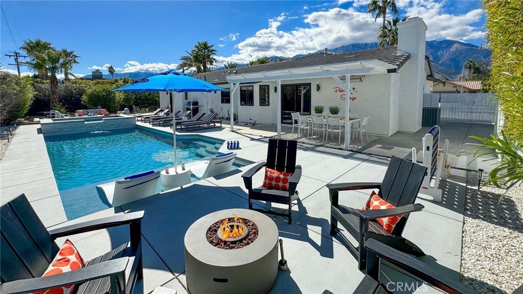 Welcome home to Nicola Oasis; your private, luxury modern retreat in the heart of Palm Springs. Step outside to your completely secluded, oversized backyard featuring a huge new saltwater pool, tanning shelf and 14-person spa; an 8-person outdoor dining area with infrared heat, Adirondack chairs surrounding a gas fire pit, cozy seating/working areas tucked into a zen fruit tree garden, outdoor games and ample space to relax and enjoy the beautiful Palm Springs sunrises and sunsets. Step inside to 1700 square feet of living space featuring midcentury design by Tim Pontarelli and: Four bedrooms, each with plenty of closet space including a dresser and luggage rack Two full spa bathrooms, each with a double vanity and rain shower head A huge, open chef's kitchen with two wine refrigerators plus Nespresso and Keurig coffee makers Three dedicated workspaces with plenty of light, desk space and power outlets Large living room with vaulted ceilings and gas fireplace Hi-speed mesh wifi throughout, and two large Roku Smart TVs featuring all the popular streaming apps like Netflix, Hulu, HBO max and YouTube TV. Nicola Oasis also features a full-sized laundry room with washer and dryer, a 2-car garage, plus an oversized driveway with tourbus/RV parking. Seasonal rates vary.