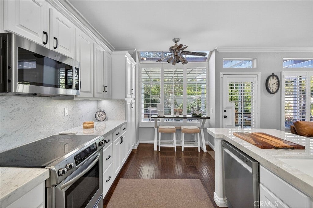 Perhaps one of the most compelling opportunities currently offered in Laguna Niguel, this thoughtfully updated residence sits on an expansive wraparound corner lot, offering a rare sense of space, privacy, and flexibility. The generous lot configuration creates multiple outdoor zones for entertaining and everyday enjoyment, giving the property a more open, estate-like feel that is increasingly difficult to find. Inside, the home balances warmth and refinement with ease. Dark hardwood floors anchor the living spaces with timeless elegance, while the remodeled kitchen serves as a natural focal point—appointed with dolomite countertops and a tasteful, understated design that feels both elevated and inviting. The floor plan flows effortlessly for daily living and hosting alike, with intuitive transitions and sightlines that enhance the home’s livability. A major highlight of this property is the seamless relationship between indoor and outdoor living. The wraparound yard offers exceptional usability, with multiple areas to gather, dine, and relax while still maintaining a strong sense of privacy. Whether entertaining guests or enjoying quiet evenings at home, the outdoor spaces feel intentional, spacious, and highly functional. Residents enjoy access to Marina Hills’ sought-after community amenities, including a pool, clubhouse, tennis and pickleball courts, parks, playgrounds, and BBQ areas. Outdoor enthusiasts will appreciate the home’s proximity to the scenic Salt Creek Trail, which winds directly to Salt Creek Beach along a picturesque four-mile coastal route—ideal for walking, biking, or weekend escapes to the ocean. With its refined updates, elegant finishes, and exceptional lot positioning, this home represents a rare opportunity to enjoy space, style, and an elevated coastal-adjacent lifestyle in one of Laguna Niguel’s most desirable communities.