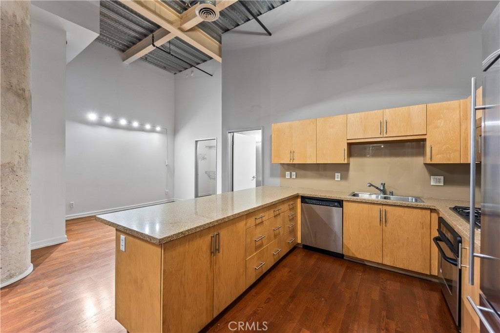 Welcome to Grand Lofts, where industrial style, modern luxury, and downtown energy come together. Unit A109 delivers 1,150 sq. ft. of open-concept living with soaring ceilings, a dramatic wall of windows! This loft comes with two designated flexible bedroom spaces—including a loft-style room perfect for a home office, studio, or creative workspace. The kitchen elevates the space with a sleek matching countertop and backsplash paired with stainless steel appliances. Unit A109 comes with a total of 2 side-by-side parking spaces! Residents enjoy state of the art amenities: a pool and a spa with captivating city views, fitness center, beach volleyball court, basketball half-court, BBQ lounges, business center, dog park, and vibrant social and gaming lounges. Just steps from Crypto.com Arena, LA Live, USC, the Farmers Market, and DTLA’s top dining and nightlife, Grand Lofts puts you at the center of it all. Come and see this condo before it is sold!