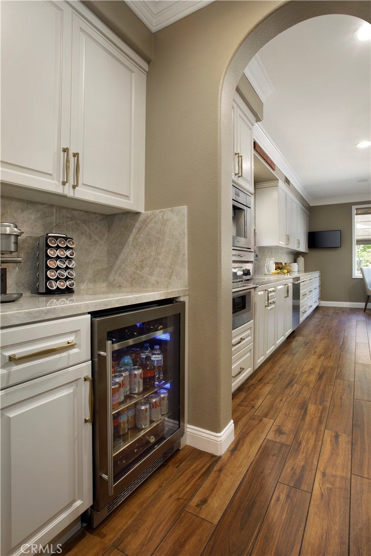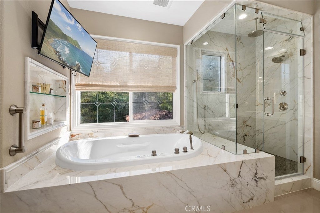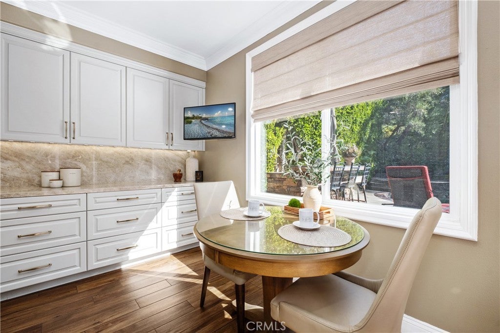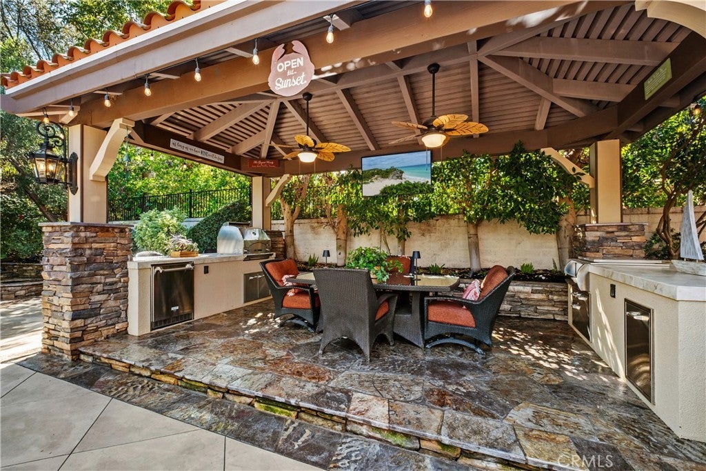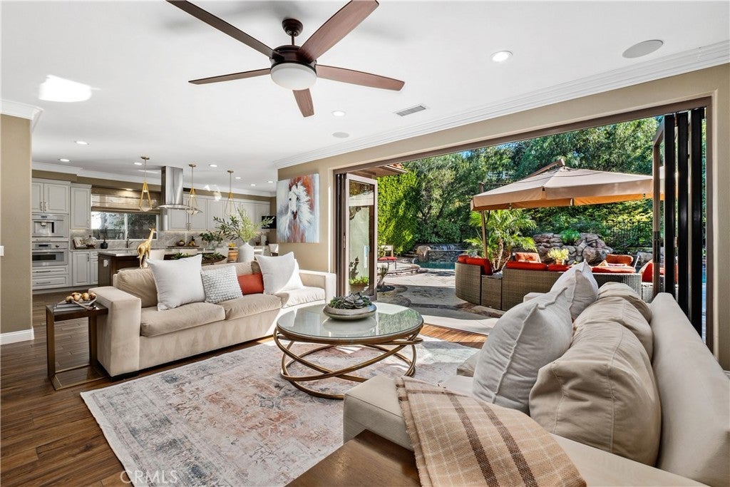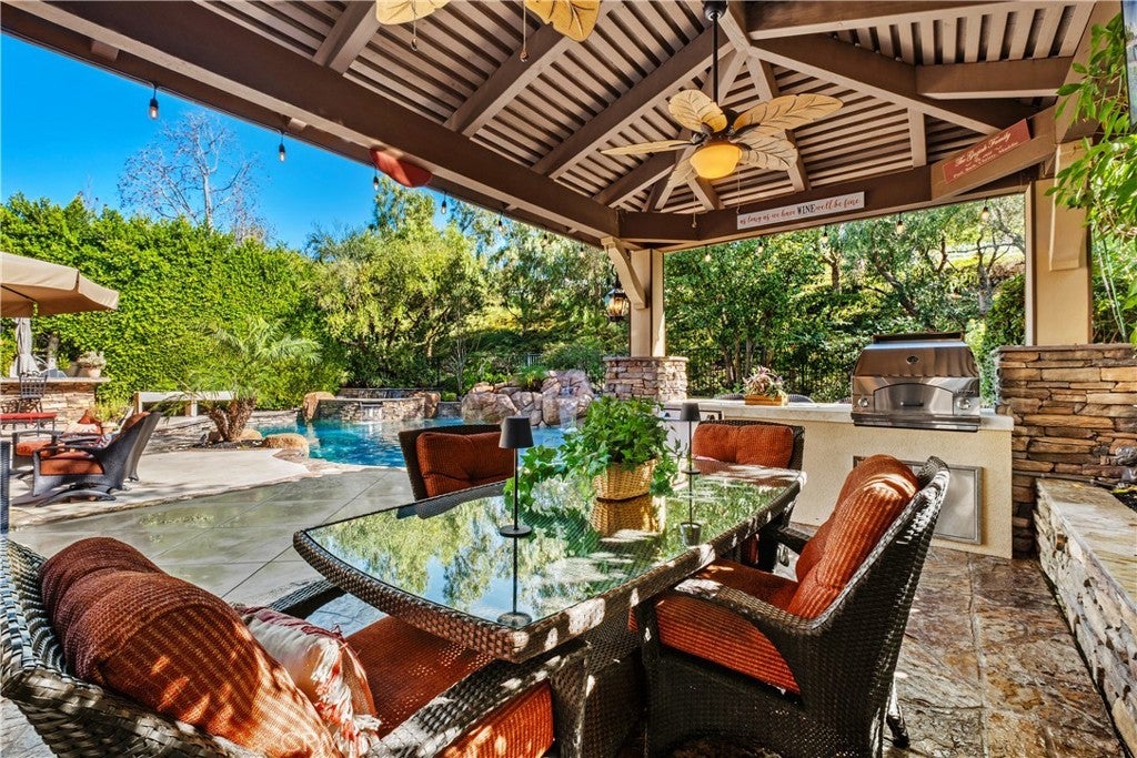 Located in the guard-gated community of Coto de Caza, this highly upgraded home radiates pride of ownership with extensive updates and modern luxuries at every turn, now on the market for the first time in over twenty years. Italian porcelain flooring flows through most of the main level, alongside a dedicated office with built-in desks. Entertaining is effortless with a wine room with built-in wine wall and a new bar room complete with icemaker and fridge. The kitchen was recently taken down to the studs and rebuilt with custom soft-close cabinetry, butler’s pantry, and top-of-the-line Thermador appliances including a six-burner gas range, double oven, speed ovens built-in coffee maker and wine fridge. Comfort and technology blend seamlessly with leased solar panels, Ring doorbell, Honeywell alarm system, and all new Hunter Douglas blinds with a lifetime warranty. Smart home features also include a custom high-end mesh network and Control4 system, allowing you to control the TV, audio, and thermostat from your iPad, with speakers installed throughout the living areas, primary suite and outdoors. Bifold doors stretch across the back of the family room to extend your living space right into the backyard. This outdoor paradise features a large heated Pebble Tec pool with waterfalls and a jacuzzi. Host gatherings with the brand new Lynx grill, pizza maker, outdoor TV and fridge, or relax by the fire pit surrounded by fruit trees, designer roses, fountains and custom lighting. The laundry room is also recently renovated with new cabinetry and the washer and dryer included. All bathrooms have been recently remodeled, and each bedroom features mirrored wardrobe doors. The upper level also hosts a finished attic for storage and a hall with built-in bookshelves and reading nook. The primary suite features a private fireplace and beverage bar. The spa-inspired primary bathroom offers a bubbler tub and MrSteam shower with aromatherapy, Toto heated washlet,Robern medicine cabinets, and a walk-in closet by Closet World. Residents enjoy access to local horse trails and you also have the option to join as a Social Member to enjoy fitness or become a Full member to enjoy tennis, pickleball and two championship golf courses designed by Robert Trent Jones Jr. at the renowned Coto de Caza Golf & Racquet Club. Located only minutes from diverse shopping and dining, this property offers a rare combination of luxury updates and active community living in a spectacular setting.