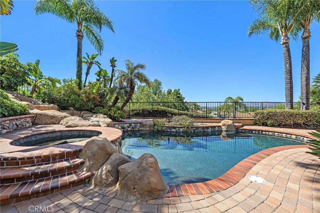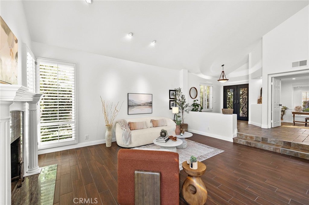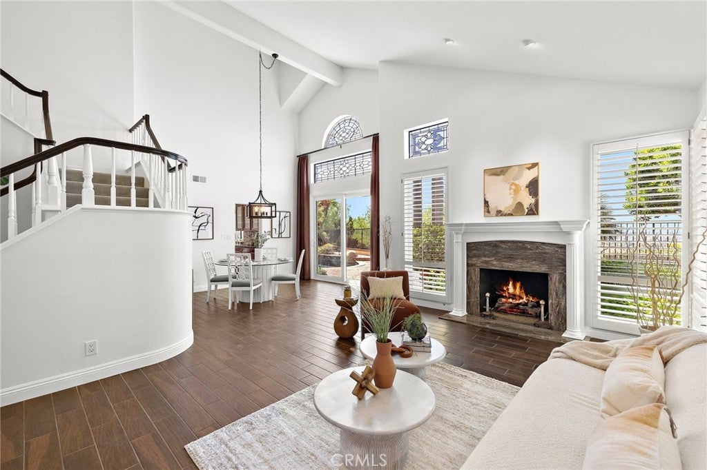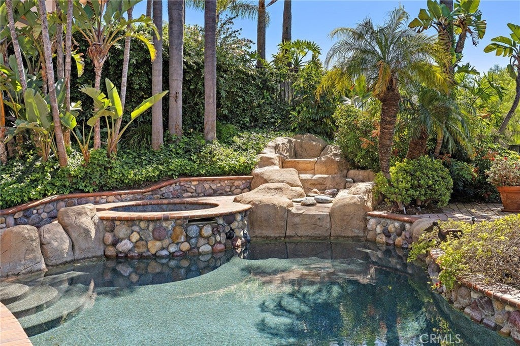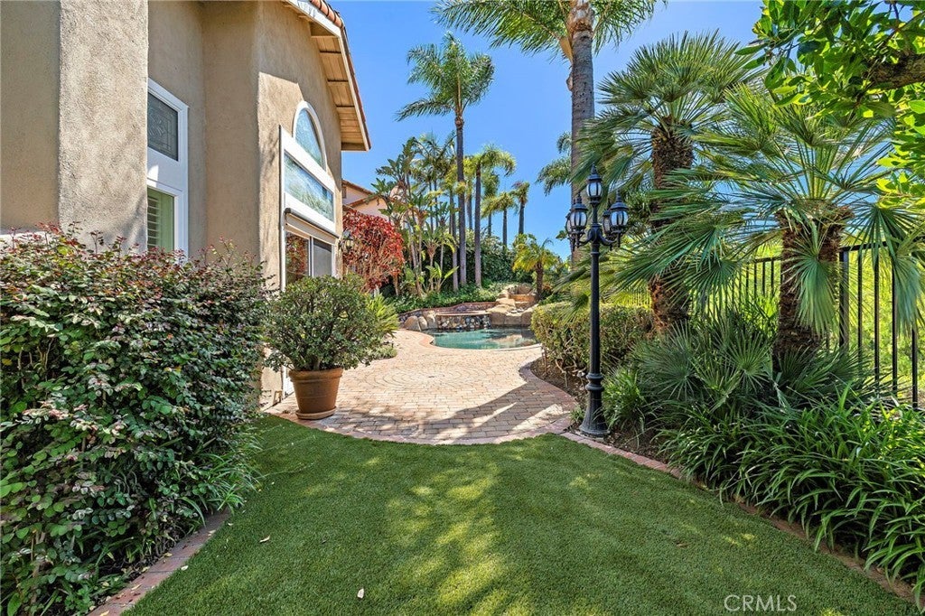 Nestled within the prestigious gated community of Canyon Crest Estates, this beautifully maintained residence offers a seamless blend of comfort, elegance, and everyday livability. Thoughtfully designed with both function and flow in mind, the home features 4 spacious bedrooms—including a highly desirable main-floor bedroom—and 3 well-appointed bathrooms. Step inside to an inviting, light-filled layout where living spaces unfold effortlessly from one room to the next. Fireplaces in both the living room and family room create warm, intimate gathering spaces—perfect for quiet evenings or hosting with ease. The heart of the home extends outdoors to a private backyard retreat, complete with a sparkling pool, soothing spa, and breathtaking views—an ideal backdrop for entertaining or simply unwinding at the end of the day. Upstairs, the reimagined primary suite offers a true sense of escape, highlighted by a spa-inspired bath featuring luxurious heated floors, adding a layer of comfort and refinement to your daily routine.Set within a secure, amenity-rich community and conveniently located near top-rated schools, shopping, dining, and recreation, this home embodies the best of Mission Viejo. Live the good life in Mission Viejo!