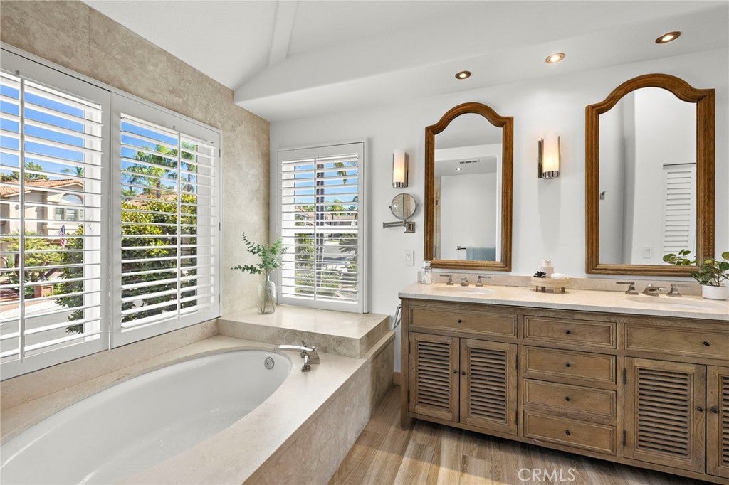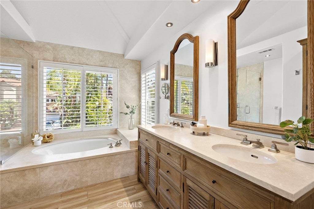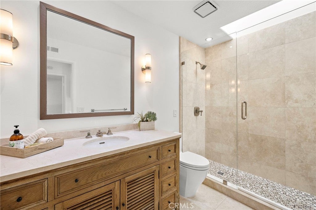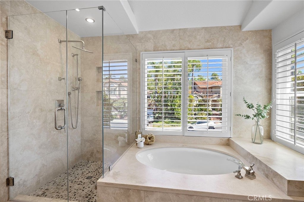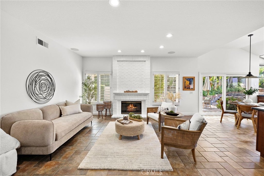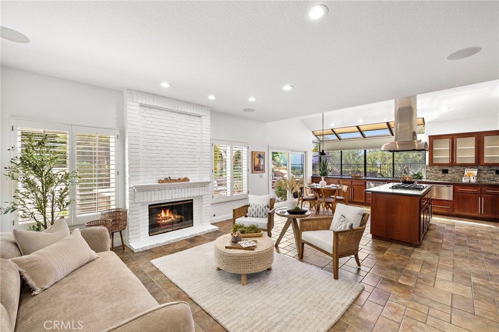 Nestled within the prestigious gated community of Canyon Crest Estates, this beautifully maintained residence offers a seamless blend of comfort, elegance, and everyday livability. Thoughtfully designed with both function and flow in mind, the home features 4 spacious bedrooms—including a highly desirable main-floor bedroom—and 3 well-appointed bathrooms. Step inside to an inviting, light-filled layout where living spaces unfold effortlessly from one room to the next. Fireplaces in both the living room and family room create warm, intimate gathering spaces—perfect for quiet evenings or hosting with ease. The heart of the home extends outdoors to a private backyard retreat, complete with a sparkling pool, soothing spa, and breathtaking views—an ideal backdrop for entertaining or simply unwinding at the end of the day. Upstairs, the reimagined primary suite offers a true sense of escape, highlighted by a spa-inspired bath featuring luxurious heated floors, adding a layer of comfort and refinement to your daily routine.Set within a secure, amenity-rich community and conveniently located near top-rated schools, shopping, dining, and recreation, this home embodies the best of Mission Viejo. Live the good life in Mission Viejo!