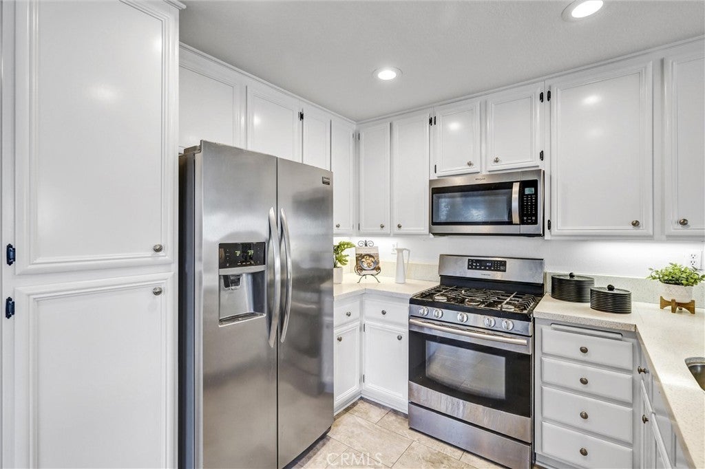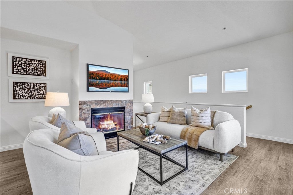 Welcome to the desirable neighborhood of Tierra Montanosa of Rancho Santa Margarita. This beautiful, turnkey end-unit carriage unit condo offers 2 upstairs bedrooms and 2 full bathrooms with an inviting open floor plan, soaring ceilings, and abundant natural light throughout with approximately 1,100 square feet of living space. The spacious living room features a cozy fireplace and opens to a lovely, oversized balcony perfect for relaxing. The modern kitchen is equipped with quartz countertops and stainless-steel appliances. The generous primary suite includes walk-in closet, new dual-sink vanity, and quartz countertops. Other upgrades include dual pane windows, recessed lights, ceiling fans, vinyl flooring, fresh neutral paint, custom bathroom lighting, and more. The attached garage offers direct entry into the home, and a reserved parking space is also included. Enjoy the convenient location within a short walk to Melinda Heights Elementary, O’Neil Regional Park, sports courts, hiking and biking trails, shopping, and dining, within easy reach of Highway 241. Residents enjoy access to a variety of amenities, including resort style swimming pool/spa, Beach Club, play areas, summer concerts, and access to Rancho Santa Margarita Lake. It offers the perfect balance of luxury, convenience, and lifestyle. Don’t miss the chance to make this stunning property your own!