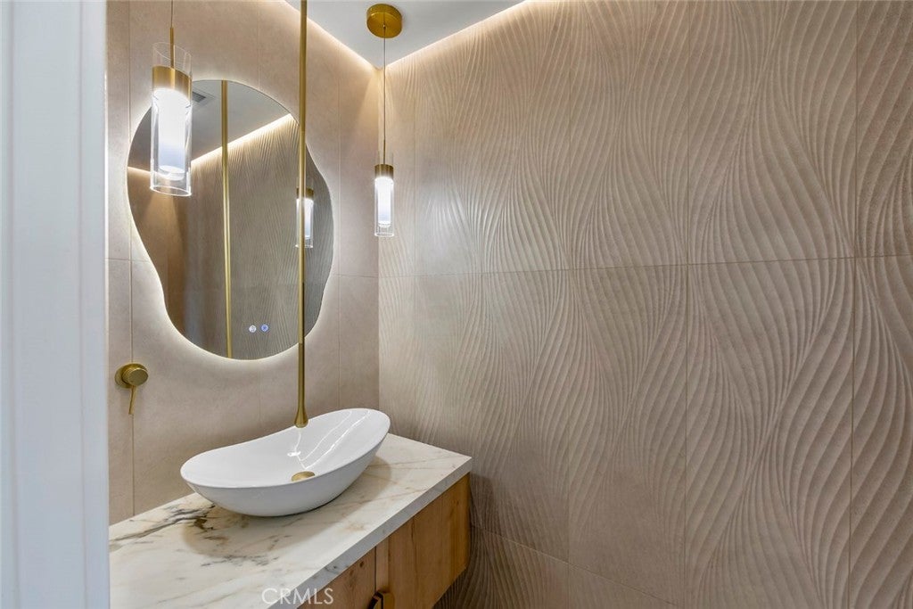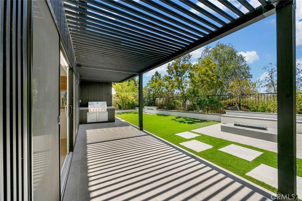 Presenting one of the largest and most upgraded homes in Robison Ranch, this exceptional cul-de-sac residence offers approximately 2,613 sq ft of thoughtfully expanded living space, including a permitted Junior ADU, additional 1.5 baths, a loft, and a fully reimagined chef’s kitchen—adding an estimated 500 sq ft beyond the original footprint. Designed for modern living and long-term efficiency, the home features a fully paid-off solar system, new energy-efficient HVAC, tankless water heater, Energy Star double-pane windows, and updated plumbing and electrical throughout—delivering comfort, sustainability, and lower utility costs. Striking curb appeal sets the tone with a modern façade, custom driveway, low-maintenance wood-look fencing, and a dramatic floating entry with a castle-style pivot door. Inside, the expansive layout flows seamlessly from formal spaces to relaxed living areas, all opening to a resort-style backyard complete with BBQ station, modern pergola, fire pits, and a tranquil waterfall—ideal for entertaining or everyday enjoyment. The designer powder room showcases a ceiling-mounted faucet, floating vanity, decorative tile accent wall, and layered LED lighting. An illuminated addressable LED staircase leads to the upstairs loft with sleek modern cable railing. The primary suite is a true retreat, featuring vaulted ceilings, sound-insulated accent paneling, and a spa-inspired bath with a walk-in shower, Japanese soaking tub with scenic views, private water closet, and a spacious walk-in closet. A downstairs bedroom with ensuite bath and private patio access offers excellent flexibility for guests or multi-generational living. The permitted JADU includes a kitchenette with integrated sink and dishwasher, a private bath, and interior access—perfect as an independent suite, home office, or income-producing space. The chef’s kitchen anchors the home with Dacor® built-in appliances, a dramatic waterfall island with microwave drawer and wine cooler, and custom modern LED lighting. High ceilings elevate the living and dining areas, centered around a marble slab stone fireplace that opens beautifully to the backyard. Robison Ranch enjoy access to a private community pool, playground, tennis, pickleball, basketball courts, BBQ areas, and proximity to top-rated schools, parks, shopping, and dining. A rare opportunity to own a turnkey, energy-efficient, and upgraded home in one of the community’s most desirable locations.
