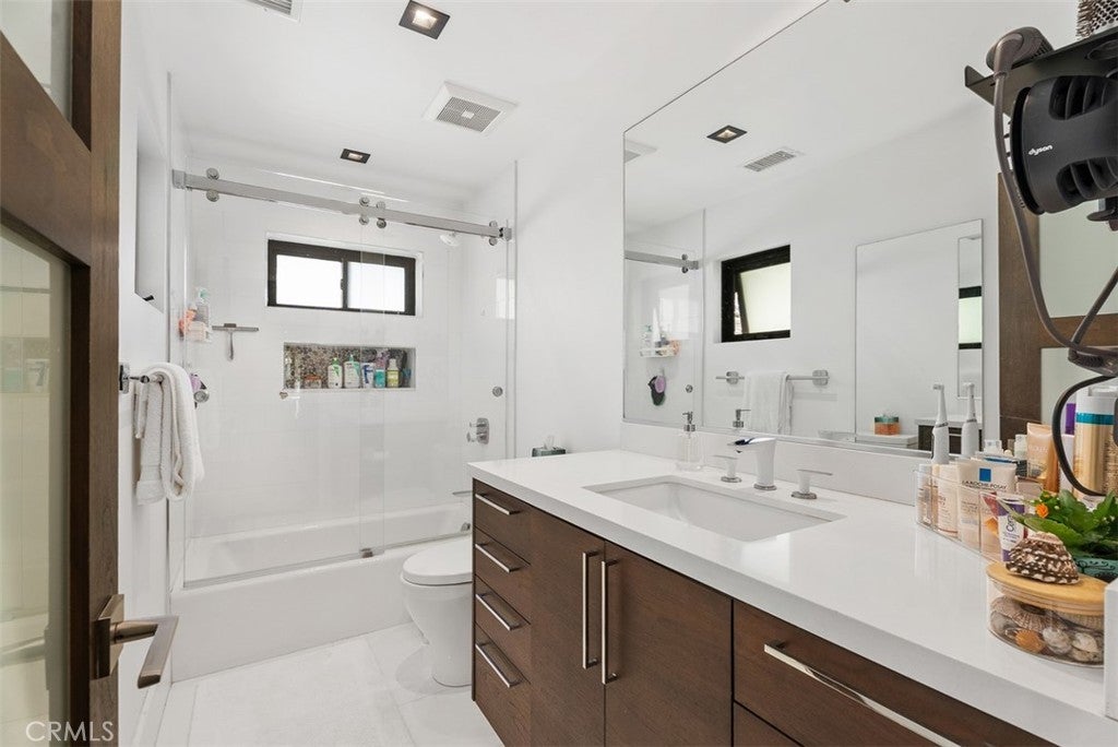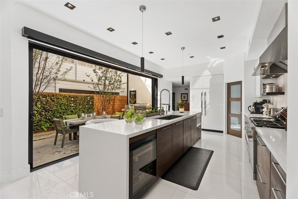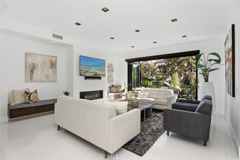 Completely rebuilt in 2017, this single-family residence in the heart of Corona del Mar Village offers approximately 3,300 square feet with four bedrooms and five bathrooms, thoughtfully designed for effortless living and elevated coastal style. The main level is defined by an expansive open layout where the kitchen, living, and dining areas connect seamlessly, creating a natural flow for both everyday living and entertaining. Expansive disappearing glass walls and La Cantina folding doors open to multiple outdoor patios, blending indoor and outdoor living in a way that feels both spacious and inviting. A main-level bedroom or den adds flexibility, while a private elevator provides convenient access to every floor, an uncommon and highly desirable feature in the Village. The primary suite is exceptionally spacious, offering a true retreat with generous scale and a sense of separation. The spa-inspired bath features a soaking tub, separate walk-in shower, and a large walk-in closet. Two additional bedrooms are located on the same level, each with their own ensuite bathrooms, offering both comfort and privacy. The upper levels are thoughtfully arranged with refined finishes and a layout that balances openness with privacy. Above, the rooftop offers two distinct deck spaces, creating a true extension of the home, ideal for entertaining or relaxing while taking in panoramic views of the Corona del Mar Village skyline with the ocean beyond. Additional highlights include a spacious two-car garage, smart home features, and the rare benefit of a detached single-family residence offering privacy without compromise. A home that combines scale, functionality, and seamless design, just moments from the beach, shops, and dining.
