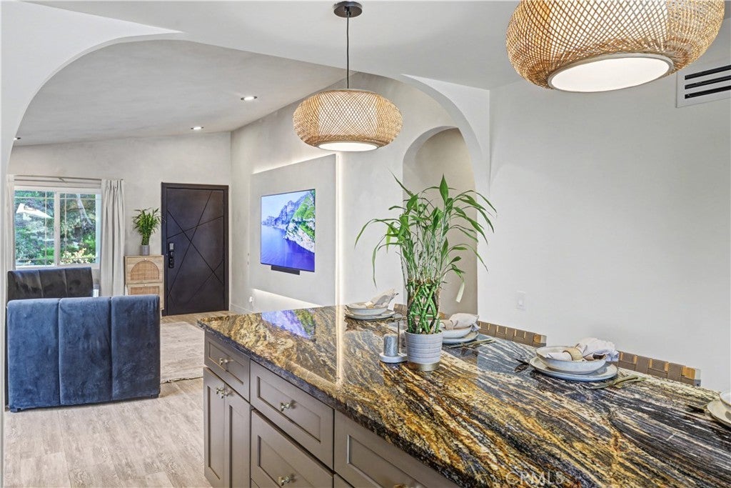 - Interior FeaturesBreakfast Bar, Granite Counters, High Ceilings, Open Floorplan, Recessed Lighting, Primary Suite, Bedroom on Main Level, Eat-in Kitchen, In-Law Floorplan, Main Level Primary, Quartz Counters