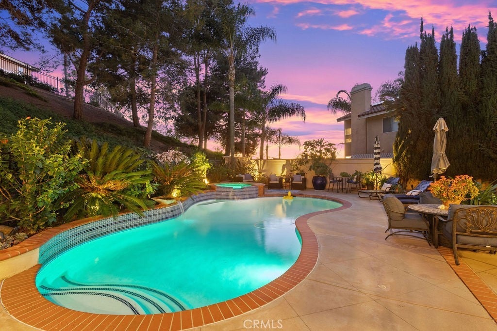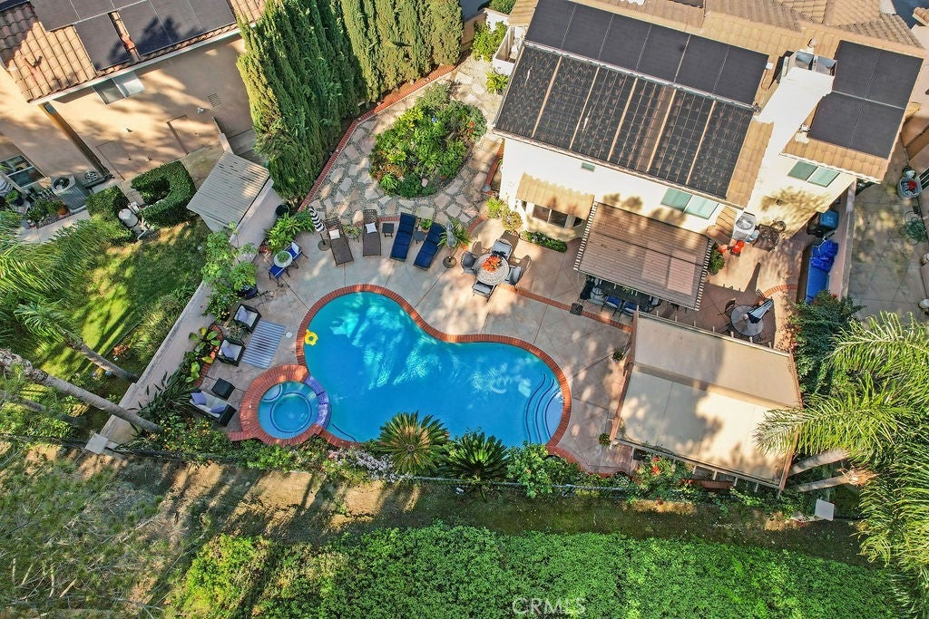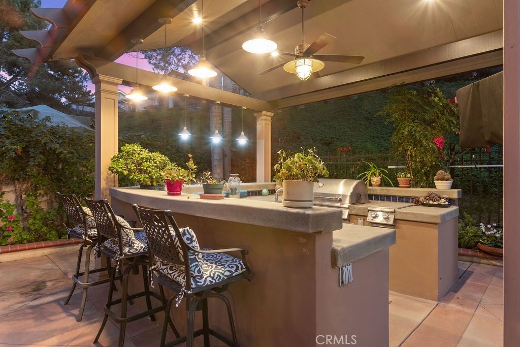 Incredible opportunity for this 3-bedroom, 2.5-bath pool home tucked away at the end of a quiet cul-de-sac in the highly sought-after Bel Air community of Mission Viejo. Upon entering the home the formal living room flows seamlessly into the dining area and onward to the beautifully remodeled kitchen, featuring upgraded custom cabinetry, soft-close drawers, granite countertops, a large center island with built-in wine chiller, high-end Samsung appliances, and a sunny dining nook overlooking the spectacular backyard and pool. The kitchen opens directly to the family room with a fireplace and serene views of the pool and spa. The primary suite is a true retreat, offering a spa-like bathroom with a travertine-lined walk-in shower and bench, granite counters, dual vanities with soft-close drawers, designer lighting, framed mirrors, and a walk-in closet with sleek opaque silhouette glass sliding doors. Both the hallway and downstairs bathrooms have also been upgraded. Designed for indoor-outdoor living, the resort-style backyard is truly an entertainer’s dream. The covered outdoor kitchen is complete with bar seating, a premium five-burner Bull BBQ with two side burners, Flame outdoor refrigerator, and hot/cold water sink. The sparkling pool and attached spa have newer Pentair pool equipment, all conveniently controlled via a phone app--along with outdoor lighting and music in both the front and back yards. Additional highlights include solar system (owned)for both house and pool (our sellers heated pool April thru October & with AC in summer had an electricity cost of approximately $400 over 12 months!), newer dual pane windows throughout, plantation shutters and newer AC and furnace. The oversized 2-car attached garage includes cabinetry. shelving and epoxy floors. As an added bonus, the home includes membership to Lake Mission Viejo, offering boating, fishing, beach access, concerts, and an unforgettable Fourth of July fireworks show.