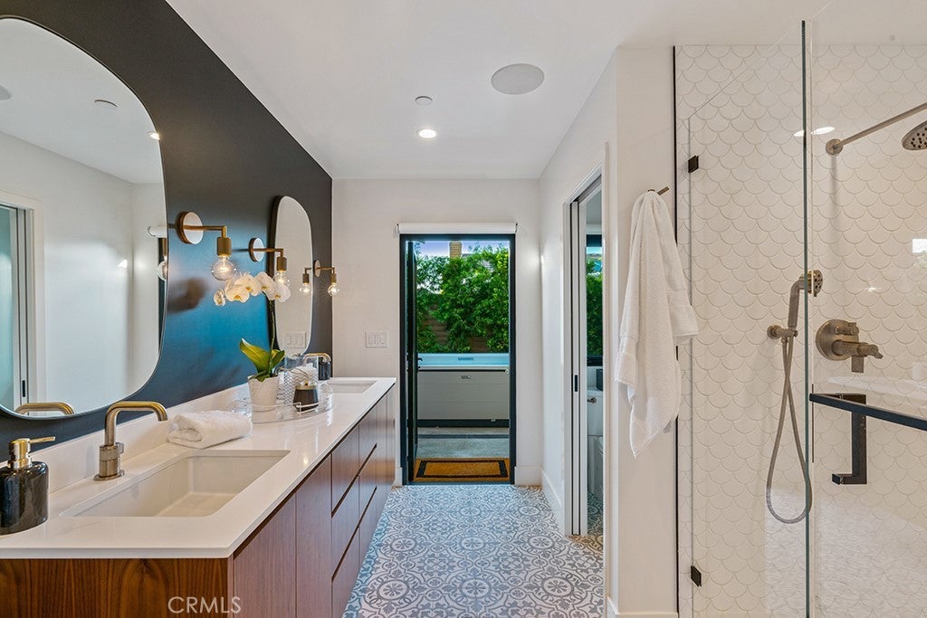 Look no further than 23655 Tampico Bay for a completely remodeled modern masterpiece in the beautiful community of Niguel Shores on the coastal side of PCH! This home offers four spacious bedrooms, including a Master Suite on the main floor with a large en-suite including a walk-in glass shower and a dual sink vanity with access to an above ground spa outside. The open-concept floorplan boasts a beautifully designed family room with vaulted ceilings and large windows bringing in an abundance of natural light, as well as a sleek modern fireplace, and a built-in wet bar with wine fridge. The turn-key kitchen features a quartz island with seating space, a hidden refrigerator and dishwasher, a high-end stainless steel 6-burner range, and white complimented by wood oak finish cabinetry for that modern sophistication. Access the courtyard through the La Cantina bifold doors to create a fantastic indoor-outdoor living experience. You will find a stunning low-maintenance space that boasts a built-in BBQ center with DCS grill, fire pit, water feature, above ground jacuzzi, outdoor shower, and bar seating situated under a kitchen awning to enjoy access to food, drinks and conversation from outside. Upstairs, you'll find three bedrooms and two additional bathrooms including a Jack and Jill, plus a bonus room. Additional features include VELUX skylights, Control4 home automation, a whole house water filtration system and the use of top-of-the-line materials that make this property feel like a brand-new model home!