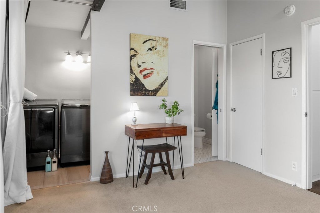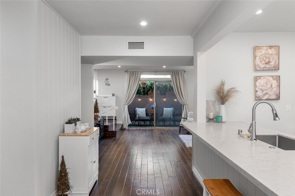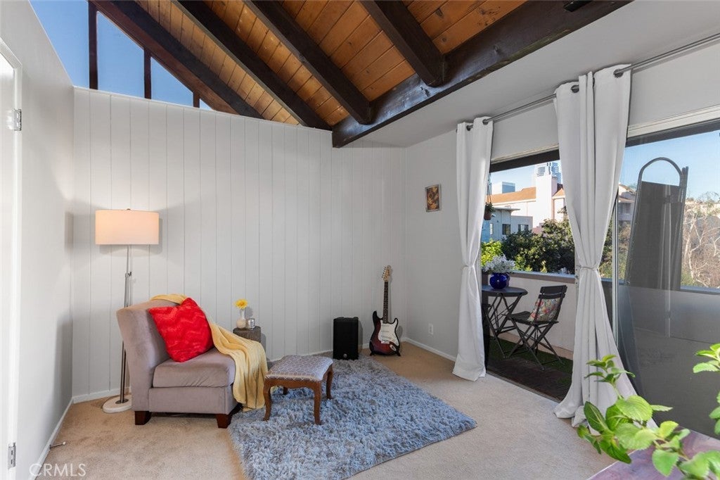 Embedded in the desirable, tree-lined streets of Los Angeles' Westside, you'll discover Unit 1 in this cozy, five-unit complex waiting to be explored. Walkable to Hillcrest Country Club & Rancho Park Golf Course. Close to Beverly Hills. Easy access to LAX airport. This is not just a condo, it's a lifestyle. This thoughtfully designed, two-bedroom, 1.5 bath, two-level residence offers a functional floor plan with both bedrooms privately situated upstairs and living spaces on the main level. The upper-level features vaulted ceilings that create an airy, open feel, complemented by rich wood beams and abundant natural light throughout. The main living area flows seamlessly to a private first-floor balcony — perfect for morning coffee or evening relaxation. Upstairs, the secondary bedroom enjoys its own private balcony retreat, offering a quaint, outdoor escape to nature with a distant city view. Laundry is conveniently located off the secondary bedroom, upstairs and away from guests. The kitchen has been upgraded and provides generous cabinetry and workspace, blending comfort and practicality for everyday living. A convenient powder room is located on the main level for guests. Additional highlights include: • Two designated tandem parking spaces in a covered carport; EV charger • Two private outdoor balconies • Vaulted ceilings upstairs • Bright, natural light throughout • Townhome-style layout with no one above or below. Ideally located near Pico Boulevard, Century City, and Westwood, the home offers easy access to shopping, dining, and commuter routes. Enjoy proximity to Rancho Park’s recreational amenities, including the renowned golf course, green space, and convenient shopping and dining along Pico Blvd. In a neighborhood known for tree-lined streets and residential charm, this is home.