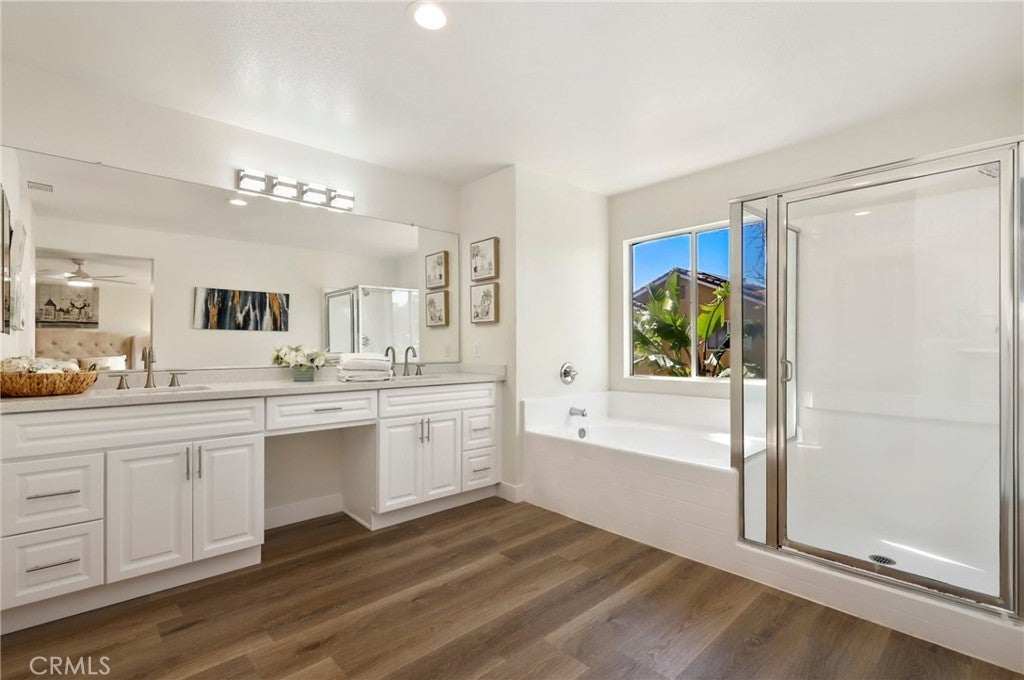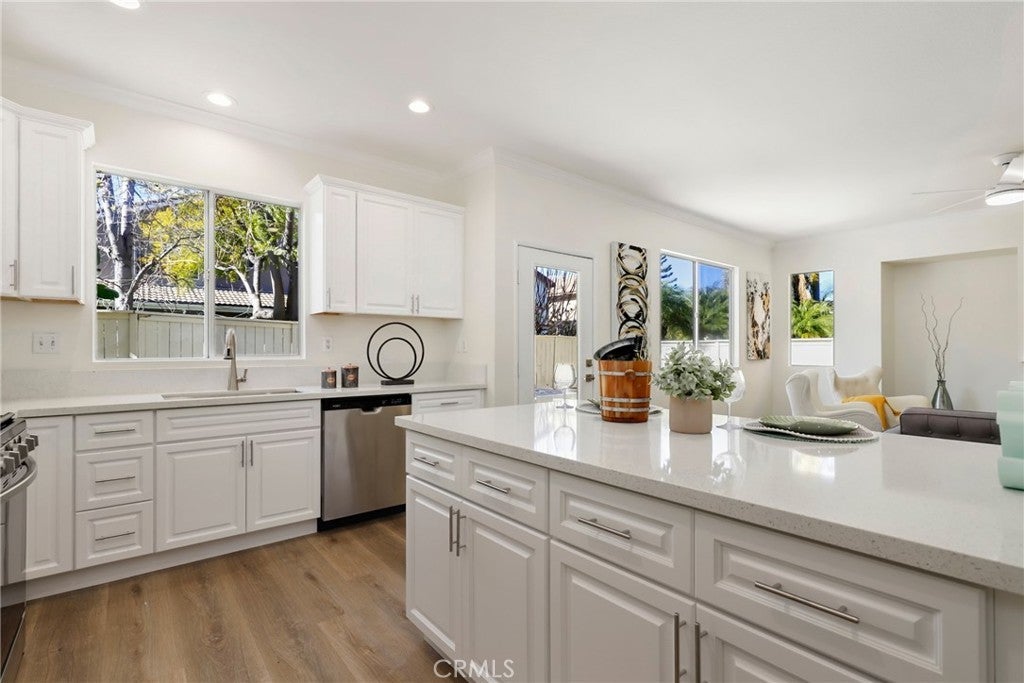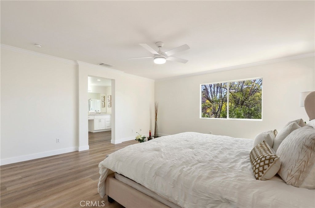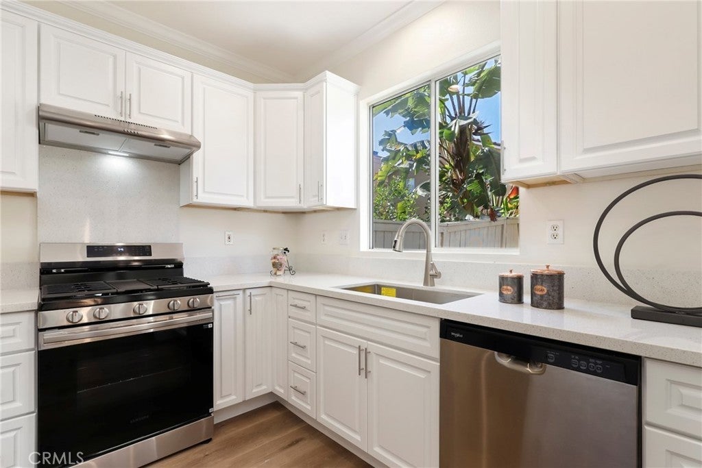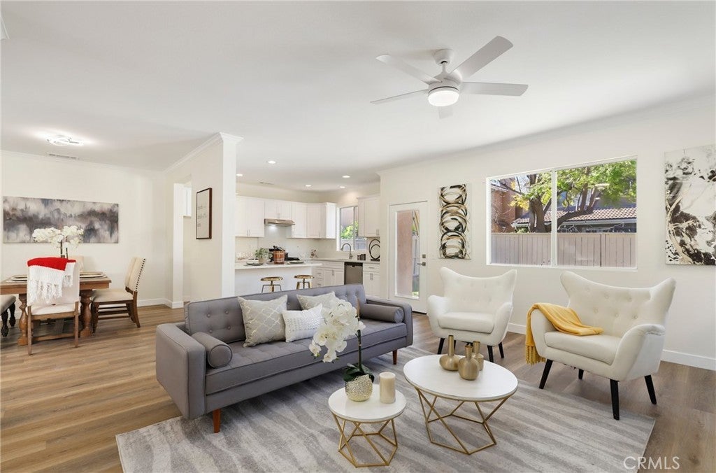 Discover the epitome of refined living in this exquisite residence 5 bedroom , 3 full bath home nestled within the prestigious gated community of Harvard Square. Boasting an airy open-concept layout, the living room, dining area, and kitchen harmonize effortlessly, creating an inviting space perfect for both relaxation and entertainment. Culinary enthusiasts will delight in the gourmet kitchen featuring stainless steel appliances, abundant cabinetry, and sleek countertops, ensuring seamless meal preparation. Ideal for guests or a private home office, a convenient downstairs bedroom and full bath enhance the home's functionality. Fresh designer paint and brand-new luxury vinyl flooring throughout lend a contemporary and sophisticated atmosphere. Upstairs, the generously sized bedrooms offer tranquility and style, with the primary suite showcasing a spa-like bath and ample closet space. Additional storage and direct access from the attached two-car garage provide practical convenience. Step outside to the expansive backyard oasis, offering a serene retreat for outdoor gatherings or enjoying the California sunshine in privacy. Residents of this secure gated community relish access to a serene park and sprawling green spaces, perfect for leisure and recreation. Situated within an award-winning school district, this home is mere minutes from top-rated schools, Trader Joe’s, The Irvine & Tustin Marketplace, The District at Tustin Legacy, and major commuter routes including the 241 Toll Road and the 5 Freeway. Embrace the opportunity to own a turnkey residence in a coveted location with low HOA fees and No Mello-Roos, combining convenience, elegance, and an exceptional lifestyle. Don’t miss out on this remarkable chance to call it your own!