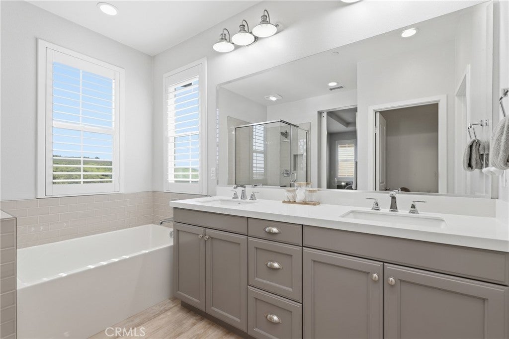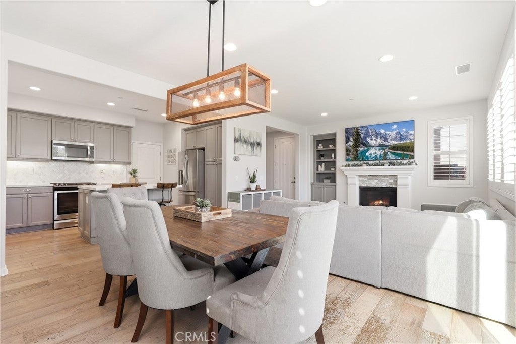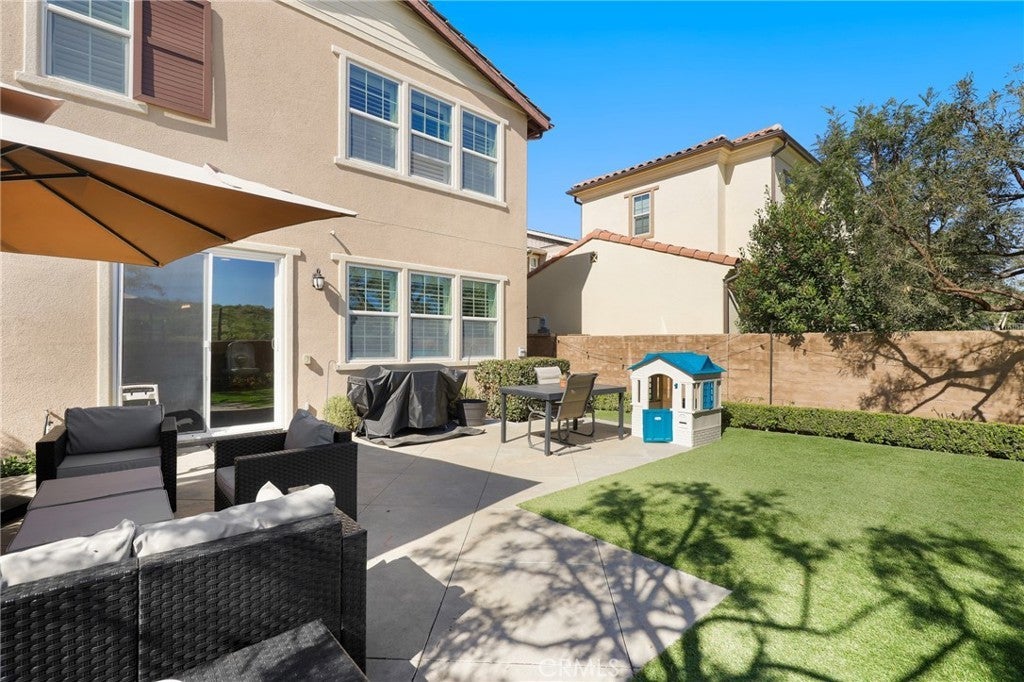 Situated on a highly desirable corner lot with no neighbors behind, this exceptional home offers rare privacy and serene hillside views in the sought-after Aria neighborhood of Esencia, Rancho Mission Viejo. This beautifully upgraded 3-bedroom, 2.5-bath residence blends modern design with comfortable California living. Light pours into the open-concept floor plan, highlighting hardwood flooring, custom built-ins, a designer fireplace, plantation shutters, recessed lighting, ceiling fans, and energy-efficient smart home features throughout. The stunning kitchen is truly the heart of the home, featuring a large center island, quartz countertops, detailed custom backsplash, gas range, and stainless-steel appliances — ideal for everyday living and effortless entertaining. Step outside to one of the larger backyards in Aria — thoughtfully landscaped with low maintenance turf, ambiance lighting and designed for gatherings, relaxation, and enjoying the peaceful backdrop. With no one directly behind you, the space feels private and open, creating the perfect indoor-outdoor lifestyle Southern California is known for. Upstairs, the spacious primary suite captures beautiful natural light through picture windows and includes a custom barn door, built-in workstation, and a spa-inspired bath with dual sinks and quartz countertops. Two additional generously sized bedrooms share an upgraded Jack-and-Jill bathroom. The upstairs laundry room is both stylish and functional with designer tile flooring, abundant storage, and a built-in sink. Living in Esencia means embracing the award-winning Rancho Mission Viejo lifestyle — a vibrant master-planned community known for its unmatched amenities and community spirit. Residents enjoy resort-style pools with lifeguards, adult pool bars, a neighborhood coffee shop, fitness centers, racquet courts, community farms, scenic hiking and biking trails, South Paw Dog Park, and the expansive 30-acre Esencia Sports Park. Year-round events and neighborhood gatherings create a true sense of connection and belonging. Ideally located just minutes from shopping, dining, entertainment, Ortega Highway, and the 241 Toll Road — and a short drive to the beautiful beaches of Dana Point and San Clemente — this home offers the perfect balance of privacy, convenience, and resort-style living. This is more than a home — it’s a lifestyle.