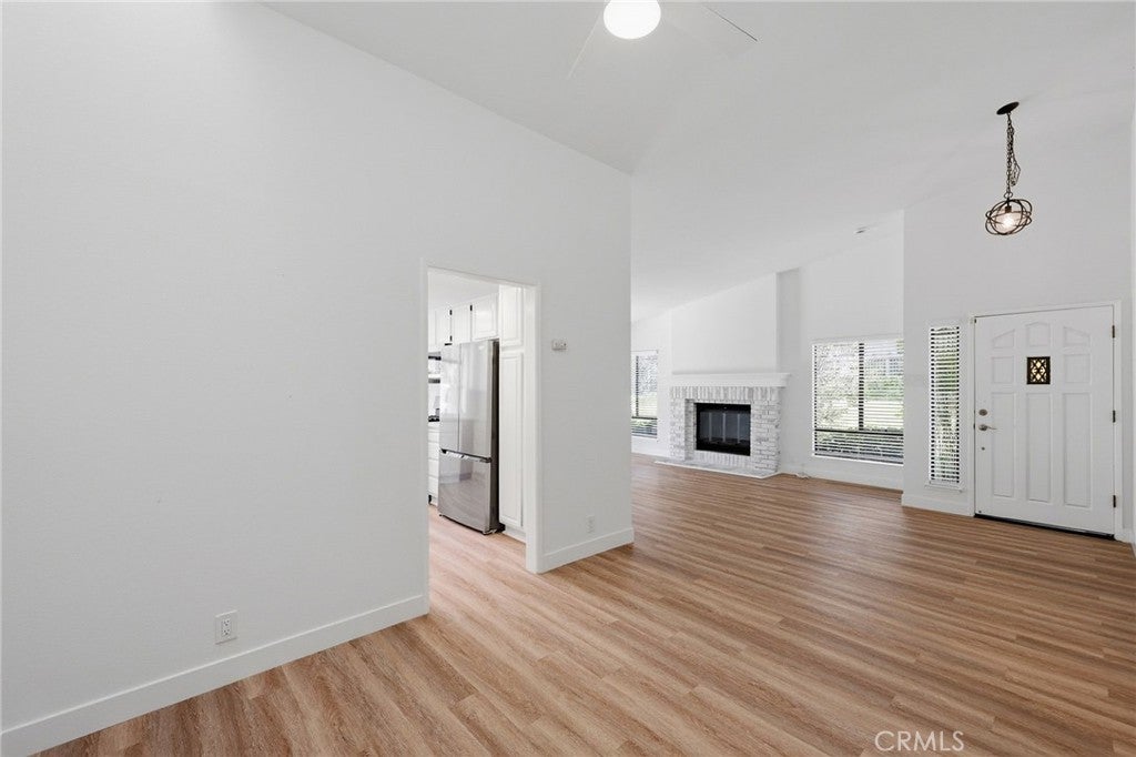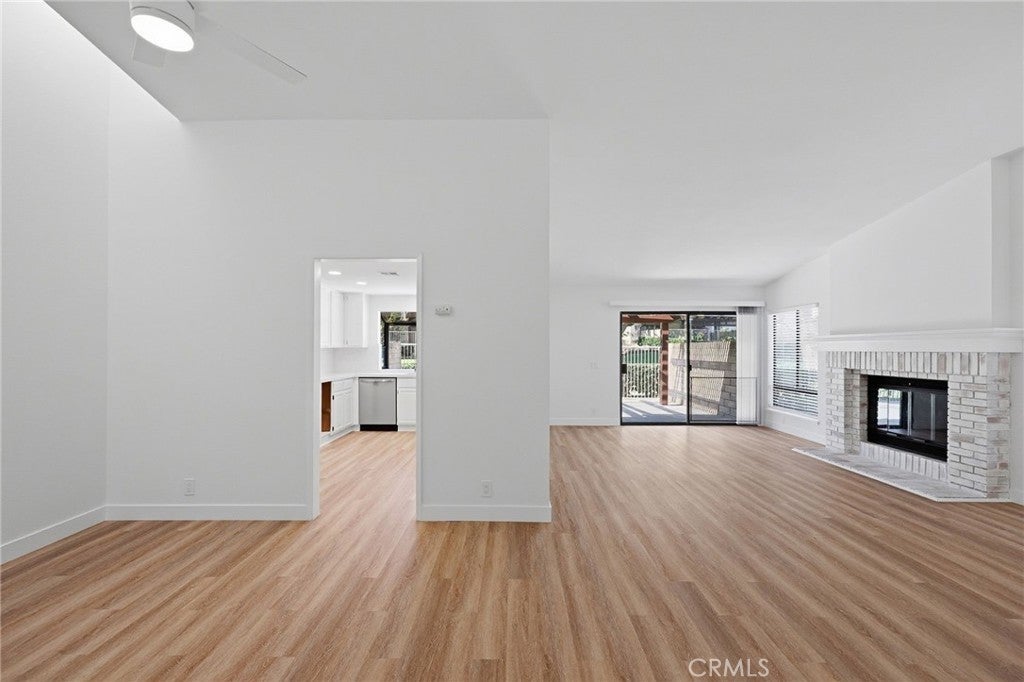 Beautiful single level townhome offering effortless coastal living with modern upgrades throughout. This light and airy residence features vinyl plank flooring throughout, high ceilings, and a cozy fireplace that anchors the open living space. The updated kitchen showcases quartz countertops, stainless appliances, and large bay window overlooking the back patio. Enjoy the convenience of a 2-car attached garage and the tranquility of a serene, well-maintained community. Residents have access to two sparkling pools and relaxing spas, creating a resort-style atmosphere just minutes from beaches, shopping, and dining. A rare single-level opportunity in an unbeatable coastal location.