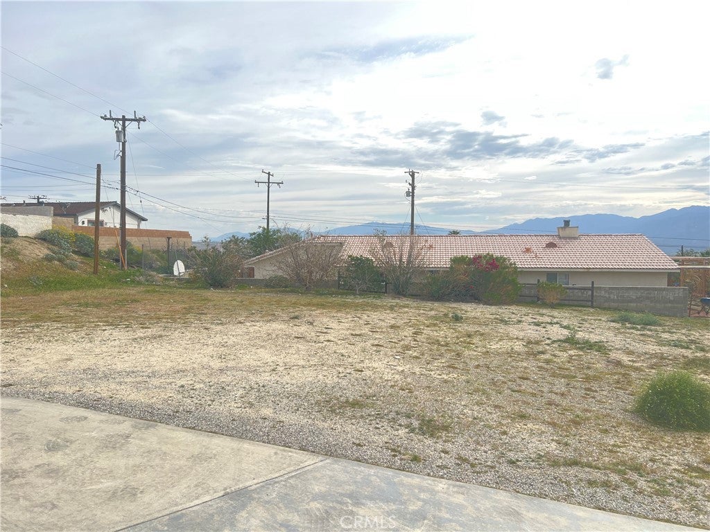 Rare opportunity to own a 4-bedroom, 2.5-bath home located on an expansive approx. 0.47-acre cul-de-sac lot in Desert Hot Springs with scenic mountain views. The flexible floor plan includes a fourth bedroom currently configured as a den, ideal for an office, family room, or easily converted back to a bedroom. The primary suite features an en-suite bathroom and a private exterior entrance, offering flexible living arrangements. The secondary bathroom provides direct access to the second bedroom as well as hallway access. Sliding glass doors from the kitchen open to a spacious backyard with ample room for outdoor living and future possibilities. The garage includes A/C, a half bath, and a separate laundry room previously used as a private studio space. The oversized lot offers potential for expansion, additional structures, or customization, subject to buyer verification with local authorities. The home is move-in ready while also presenting an opportunity for updates or renovation to suit personal preferences.