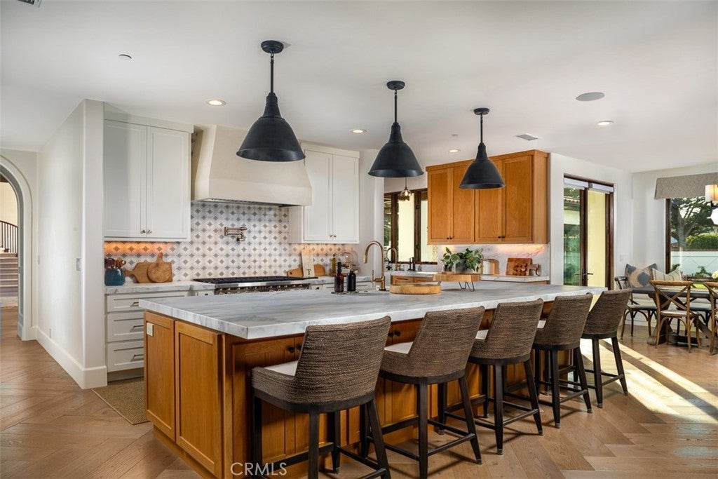 Representing a new form of enlightened luxury that elevates the art of coastal living, this reimagined custom villa was fully renovated in 2022, offering the rare opportunity to live in San Clemente’s Cotton Point Estates. With beach access just moments away, this extraordinary residence reveals an opulent sanctuary for relaxation, entertaining and cherishing life’s special moments. Proportions in the home are dramatic, with a two-story floorplan extending approximately 7,765 SF featuring six bedrooms, seven full and one half baths which includes an upper level primary suite and a lower level junior suite with private outdoor access, a new detached pool house, an office and a game room. Coved double-height reclaimed wood custom ceilings tower over the foyer and living room, with a graceful staircase, patio access and massive arched picture window lending appropriately alluring appeal. A trio of new fireplaces is showcased in select rooms, including a family room that flows to a fabulous new kitchen with massive island, Calcutta marble countertops, walk-in pantry and a breakfast room. Appliances include three Wolf ovens, an eight-burner Wolf range, two built-in Sub-Zero refrigerators, two refrigerated drawers, two Cove dishwashers, and a Scotsman pebble ice machine. New custom white oak cabinetry, Shaw flooring, Hemlock wood ceiling, Sierra Pacific metal/wood windows and doors, California Closet systems, whole-house audio and new lighting are featured throughout the entire solar-powered residence. Elegant living continues in a lux primary suite with a large deck overlooking the pool, a fireplace, retreat, freestanding tub and multi-head rain shower. Grounds are equally impressive, spanning nearly 30,000 square feet and showcasing a dual-entrance front motor court, a gated driveway leading to ample guest parking and a four-car garage at the back, and freshly renovated landscape and hardscape. Hidden from the street, the front yard presents a brand-new resort-caliber swimming pool and spa, a putting green, in-ground trampoline, loggia, an open-air fireplace, built-in BBQ island and a pizza oven. Nestled behind two sets of guarded gates, Cotton Point Estates is the finest address in San Clemente and one of the most coveted in Southern California. Limited to only 15 residences, the enclave is home to former president Richard Nixon’s Western White House. Residents enjoy a blufftop oceanfront setting close to Cottons surf break and world-famous Trestles Beach.