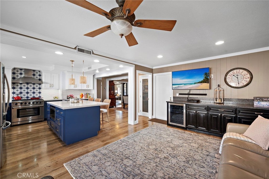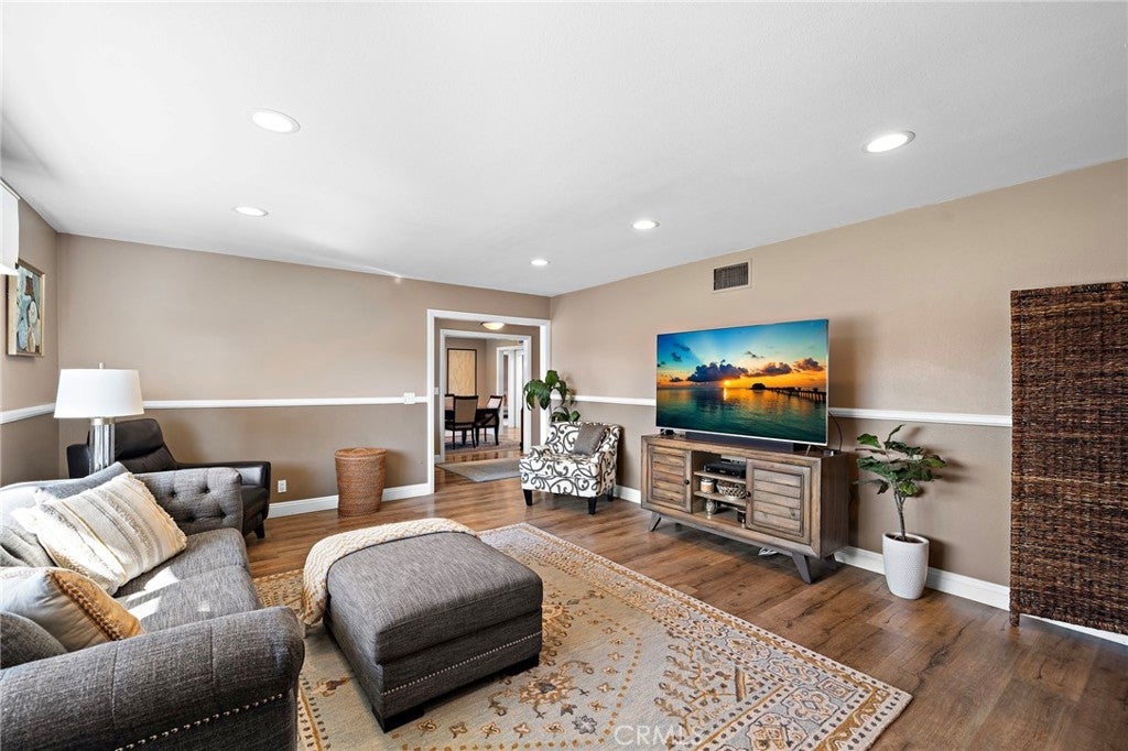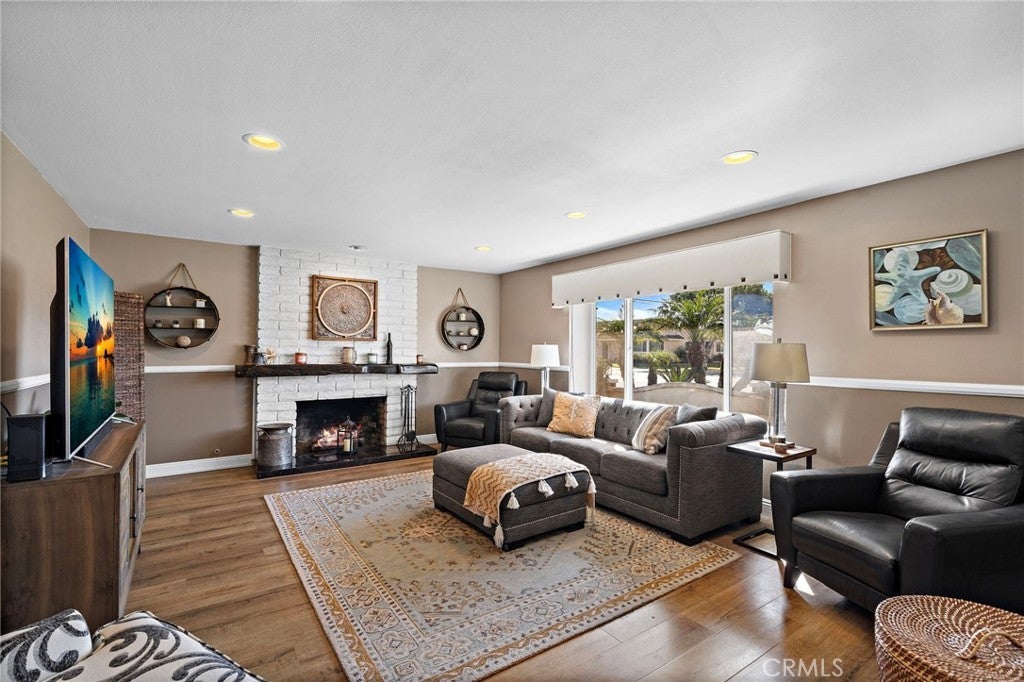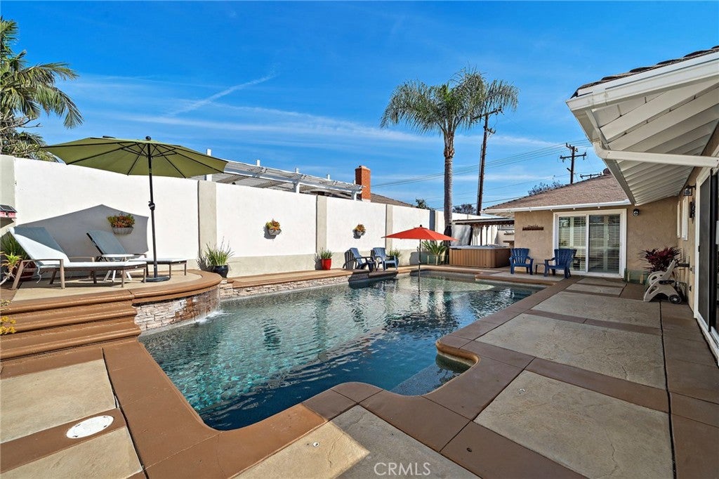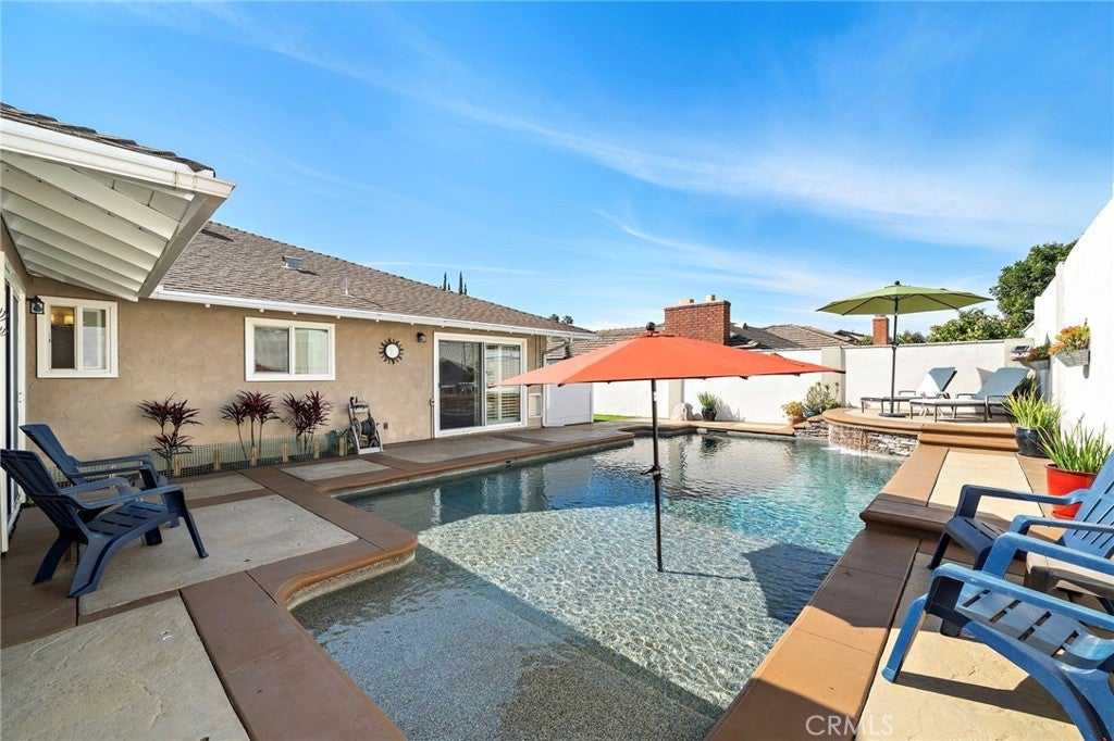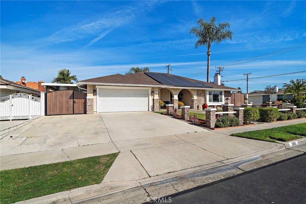 Welcome to 1355 Montevideo, ideally located in the heart of Placentia! This stunning single-story pool home offers 3 bedrooms, 2.5 bathrooms, and approximately 1,982 square feet of thoughtfully designed living space. Welcoming front porch with custom stone that brings you to the elegant double wrought-iron doors. As you enter, the spacious living room features a cozy fireplace and beautiful wood flooring that flows throughout the home. The gorgeous remodeled kitchen is a true showstopper, showcasing custom cabinetry with abundant storage, quartz countertops, a Thor 6-burner range, stainless steel appliances, a large center island, and a walk-in pantry. The kitchen opens seamlessly to the family room, complete with a built-in entertainment center with wine refrigerator, and sliding glass doors with shutters that lead to the backyard. A spacious dining area offers the ideal setting for family gatherings and entertaining. The primary suite is generously sized and features a large closet with custom built-ins and shelving. A stylish barn door leads to the beautifully remodeled en-suite bathroom with dual sinks and a spacious walk-in shower. Sliding glass doors with shutters provide direct access to the backyard retreat. Secondary bedrooms are generously sized and feature sliding mirrored closet doors. The upgraded guest bathroom includes dual sink vanity and granite counter tops adding both style and convenience. Step outside to your private backyard oasis, complete with a sparkling pool with waterfall, above ground spa, covered patio, built-in bar with refrigerator, and firepit—perfect for year-round entertaining and relaxation! Additional highlights include a gated side yard with coded entry, ideal for boat or recreational toys, attached two-car garage with epoxy flooring, ample storage, and direct access to the home. The property also features paid solar panels through Tesla Solar, enhancing energy efficiency. Located in a wonderful neighborhood within the award-winning Placentia-Yorba Linda Unified School District, this home truly has it all. Don’t miss the opportunity to make this exceptional home your own!