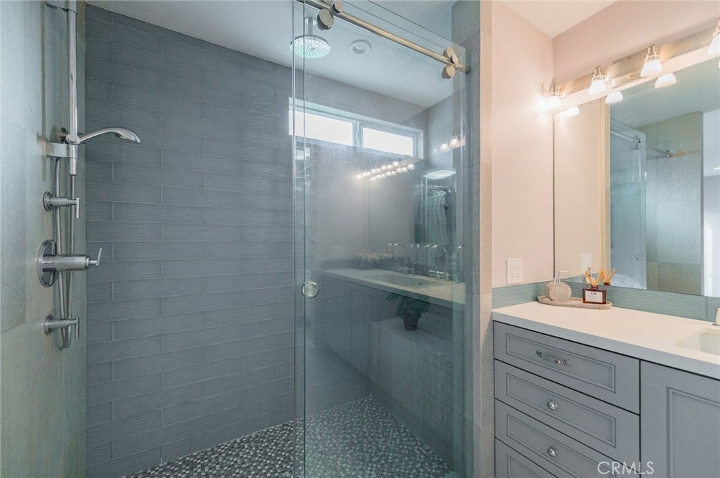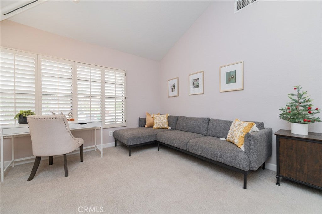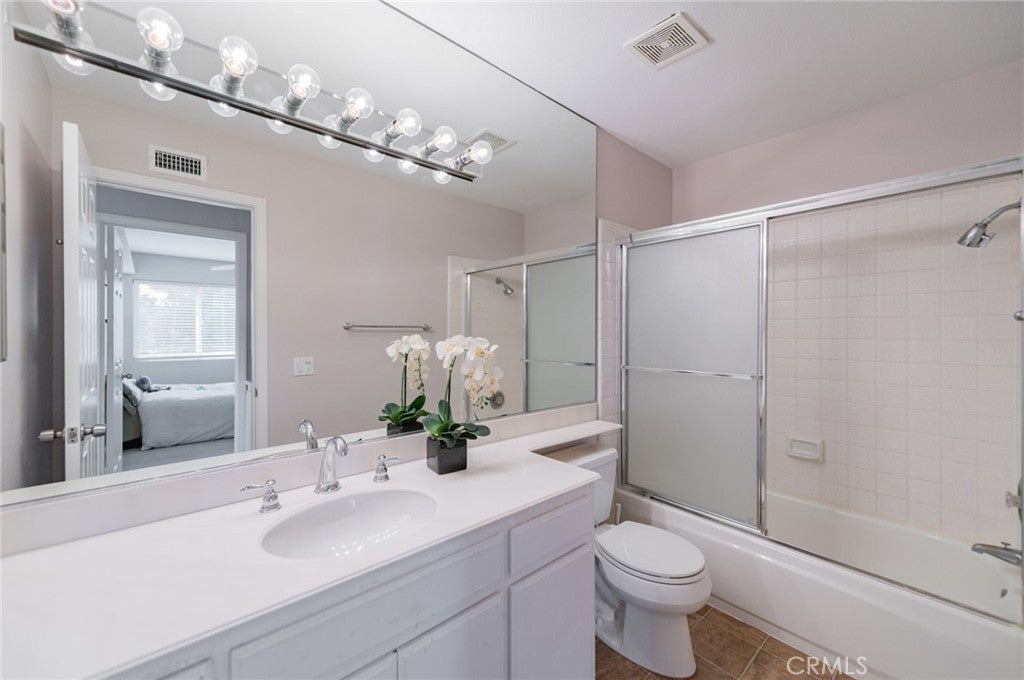 This stylish single-family residence is located in the highly sought-after Woodbridge, featuring a highly desirable south-facing orientation and a rare setting backing directly onto community green space, tennis courts, and the pool. With abundant natural light and unobstructed views, this exceptional location offers privacy and lifestyle appeal seldom found in the neighborhood. Upon entry, you are welcomed by a living room with vaulted ceilings and a warm brick fireplace. Corner windows facing the front yard fill the space with natural light, creating an inviting impression. To the right of the hallway, the kitchen, dining area, and family room form a well-designed and functional layout. The south-facing exposure keeps this living area bright throughout the day. French doors open to a sun-filled backyard and outdoor relaxation area, creating a seamless indoor–outdoor flow ideal for entertaining. The upgraded kitchen features stainless steel appliances, custom cabinetry, and a bi-fold window above the sink that enhances ventilation, natural light, and connection to the outdoors. The backyard enjoys a seamless visual connection to the community greenbelt and tennis courts, while floor-to-ceiling glass in the dining area and French doors bring lush greenery indoors and enhance the home’s bright and inviting ambiance. Adjacent to the family room is an upgraded full bathroom on the main level with modern tile and a frameless walk-in shower. Nearby, a functional zone leads to the garage and includes a laundry area and a built-in drop zone with integrated storage, hanging space, and a bench for added organization and convenience. All four bedrooms are located upstairs, with two on each side of the hallway and a shared bathroom tucked toward the rear. The primary suite enjoys a south-facing orientation and features a private patio overlooking the green space, along with an upgraded en-suite bathroom and a walk-in closet with a custom storage system. The home has no Mello-Roos, low HOA and paid-off solar, offers access to Woodbridge’s unmatched amenities, including two lakes with walking paths, multiple pools and spas, tennis and pickleball courts, parks, playgrounds, and year-round community events—delivering a resort-style lifestyle in the heart of Irvine.