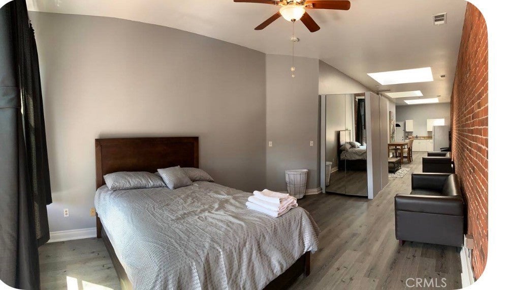 Experience the best of both worlds in this newly renovated 1-bedroom apartment on the second floor of a historic 1920s brick building. Recently remodeled, this 700sq. ft. end unit features 12-foot ceilings, large windows, skylights, and wood vinyl flooring. You’ve got all the modern comforts: a full kitchen and dining area, washer and dryer (free use of the washer and dryer, laundry room in the building), and a full bathroo. with a bathtub. Step outside and you’re right in the heart of downtown Pomona. One block from the Metrolink, across from the Fox Theater and the Glass House, and steps from Thirsty Girl Coffee, a pho restaurant beauty bar, barbershop, Tanning, Galley, a Sports bar, a Mexican restaurant, and more. In short, this is a light-filled, vintage-meets-modern gem with all the conveniences and a killer location.