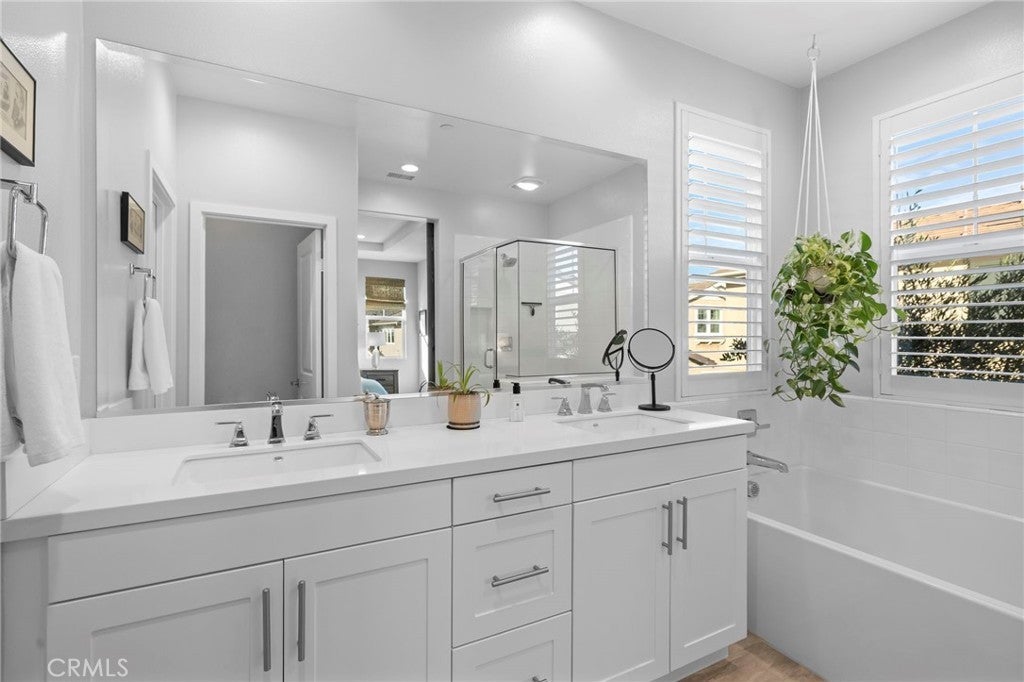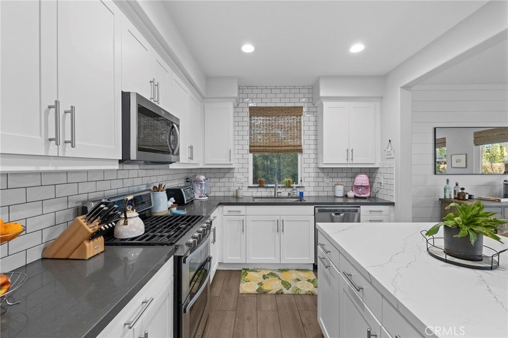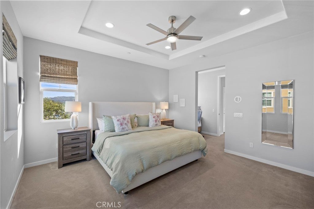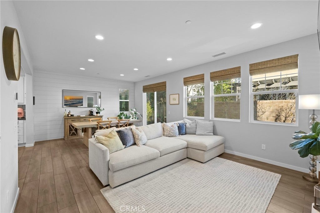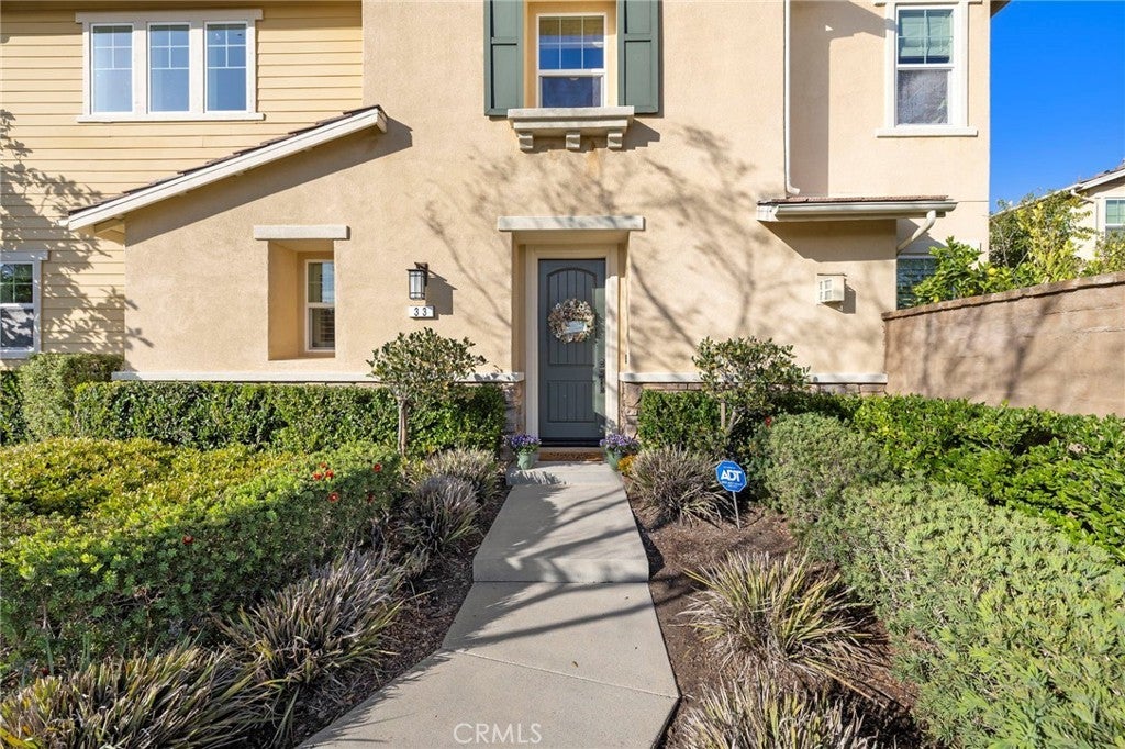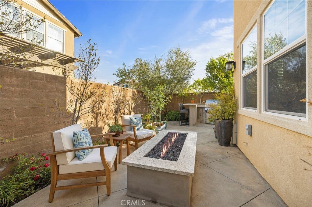 Welcome to 33 Palta, a beautifully upgraded residence situated on a premium corner lot in the Aria neighborhood by TRI Pointe. This detached Plan 1 home seamlessly blends modern design, energy efficiency, and effortless California living. Step inside to an airy, open-concept great room filled with natural light, where the living, dining, and kitchen spaces flow together for everyday comfort and easy entertaining. The inviting living room features a cozy fireplace, creating a warm focal point that enhances both ambiance and style. The thoughtfully upgraded kitchen includes stainless steel energy-efficient appliances, quartz countertops, a generous center island with seating, white European-style shaker cabinetry with pull-out storage, and elevated fixtures that add a refined touch. Upstairs, the spacious primary suite is a true retreat, offering a soaking tub, frameless glass shower, and a walk-in closet. The second level also includes a versatile tech/office space, two secondary bedrooms connected by a Jack & Jill bath, and an upstairs laundry room with built-in shelving. Additional upgrades include paid solar, recessed lighting, wood shutters, a recently installed tankless water heater, and 220V in the garage, ideal for an EV charger. Outside, the thoughtfully designed yard maximizes every inch, offering a low-maintenance outdoor setting complete with a built-in BBQ and gas fire pit—perfect for relaxed evenings and intimate gatherings. Residents of Rancho Mission Viejo enjoy an unmatched lifestyle with access to resort-style amenities including the Hilltop Clubhouse, pools, fitness centers, parks, sports courts, Esencia K–8 school, and numerous neighborhood gathering spaces.