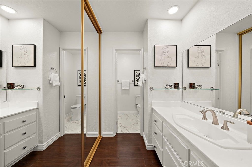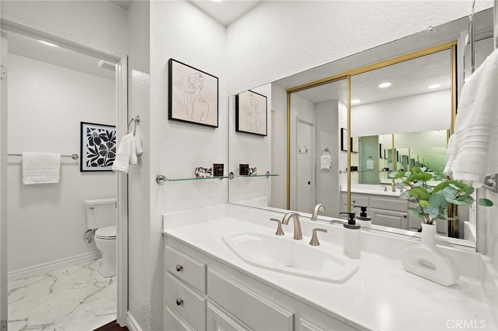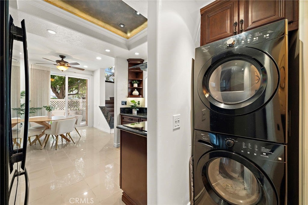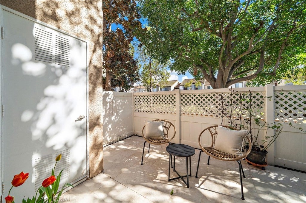Welcome to this beautifully remodeled luxury condo in a superb end-unit location of the Mission Courts II community. Stroll into this turnkey home with incredible ambiance, vaulted ceilings upstairs and downstairs, custom and recessed lighting throughout. The heart of the home features a Chef’s dream kitchen showcasing high-end JENN-AIR appliances, convection/microwave oven, induction cooktop, granite counters, and solid cherry wood cabinets, and the inside of the condo has brand new paint and lighting, custom blinds, Ilva premium Argentinian porcelain tile downstairs and engineered wood flooring upstairs. The condo also includes a newer Heating and Air conditioning system and a custom black glass remote fireplace with lighting in the living room. When you wander upstairs you will be led to two very spacious bedrooms, both with en-suite bathrooms, large closet spaces and scenic community views. There is no one above or below and the end unit location also offers much privacy and serenity. Also included is a convenient inside laundry unit with washer and dryer included and a newer dual pane sliding door that leads to a large private patio. The property includes one garage parking space and storage, and there is plenty of other open parking outside for owners and guests. You will truly appreciate this spectacular Rancho Santa Margarita community, close to top rated schools, restaurants, shopping, and a short walk to the Rancho Santa Margarita Lake & Beach Club (access and membership included). There are also nearby tennis courts and community pools, including a separate pool, spa and children’s play area within Mission Courts II. This is a beautiful home that is a MUST SEE!