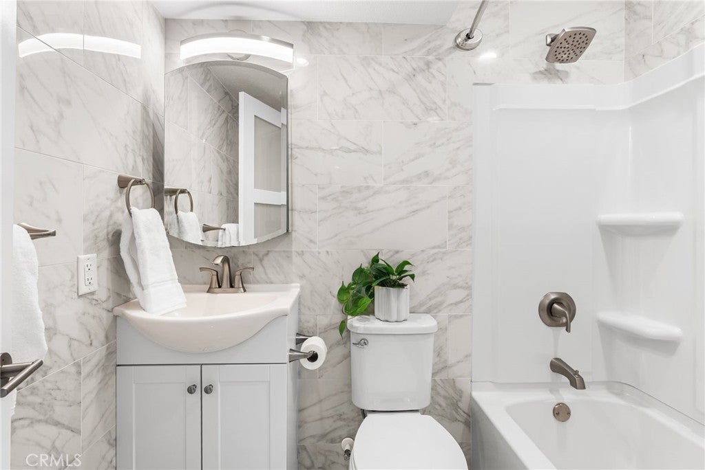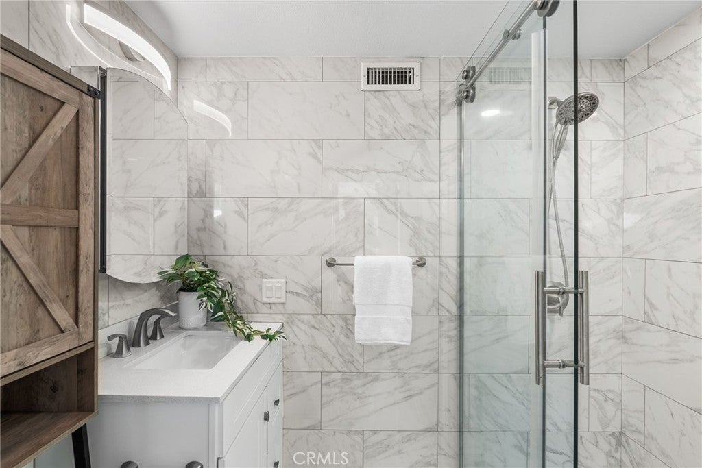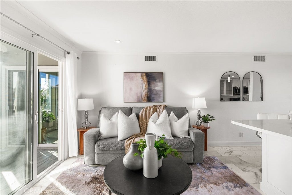 Ocean-view condo for sale in San Clemente’s Faire Harbour at Marblehead. This ground-level, single-level 2-bedroom, 2-bath condo offers panoramic ocean views, Catalina Island views, sunset views, city-light views, and a top-to-bottom remodel. One of the finest homes in Faire Harbour, the residence features approximately 984 square feet, an open-concept layout, two upgraded bathrooms, dual patios for indoor/outdoor living, and a detached finished 2-car garage with extensive cabinetry. The remodeled kitchen is the centerpiece of the home, complete with quartz countertops, an L-shaped island with bar seating, white Shaker cabinetry, pantry storage, and stainless-steel appliances. The living room includes a stylish corner fireplace and opens seamlessly to the enclosed ocean-view patio and adjoining outdoor patio, creating an ideal entertaining space. The primary suite enjoys ocean views, patio access, a walk-in closet with built-in organizers, and an upgraded bath. Additional highlights include luxury vinyl tile flooring, contemporary lighting, a Murphy bed in the guest room, washer and dryer, and a newer water heater. Appliances, patio furniture, 4 bar stools, Murphy bed, and primary bedroom bed are included. Faire Harbour residents enjoy open space, rolling coastal hills, a sand volleyball court, pool, and spa. Located just minutes from beaches, San Clemente Pier, schools, dining, shopping, yoga, and the Outlets at San Clemente.
