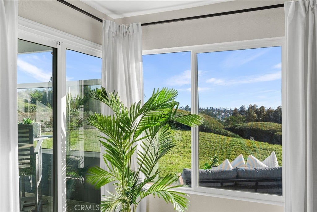 Panoramic ocean views and a top-to-bottom remodel set this ground-level, one-story condo apart as one of the finest homes in Faire Harbour at Marblehead. Enjoy sweeping vistas to Catalina Island, twinkling city lights, glowing sunsets, and a lush, expansive greenbelt—beautifully showcased from a custom-enclosed patio plus an adjoining outdoor patio that create an ideal indoor/outdoor entertaining experience. Inside, thoughtfully reconfigured living spaces deliver an open-concept layout with two bedrooms and two fully upgraded baths across approximately 984 square feet. The virtually custom kitchen is the centerpiece, featuring quartz countertops, an L-shaped island with bar seating, white Shaker cabinetry, a pantry for extra storage, and new stainless-steel appliances. A stylish corner fireplace anchors the living room, which flows seamlessly to the patios for effortless coastal living. Both bathrooms have been completely refreshed with floor-to-ceiling tile and newer fixtures. The ocean-view primary suite is a true retreat with patio access and a walk-in closet enhanced by built-in organizers. Additional highlights include luxury vinyl tile flooring, new contemporary lighting, a guest-room Murphy bed, washer and dryer, and a newer water heater. Completing the package is a detached, fully enclosed and finished two-car garage with extensive cabinetry for exceptional storage. Faire Harbour residents enjoy rolling coastal hills, abundant open space, a sand volleyball court, and a resort-style pool and spa. Conveniently located across the freeway from the Outlets at San Clemente—offering luxury theaters, premium shopping, yoga, a bakery, and dining—this home is also just minutes from beaches, excellent schools, and San Clemente’s iconic pier.