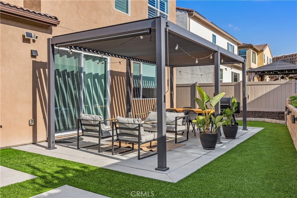 Welcome to 1603 Laurelwood Way in Oceanside — a beautifully maintained home that shows pride of ownership inside and out. The exterior features a double driveway with an extended unistone side patio for additional parking, immaculate paint, an arched entry, vinyl fencing, and low-maintenance landscaping framed by palm trees, giving it a true California feel. The backyard is designed for both relaxation and entertaining, featuring a large concrete patio, a decorative pergola with an adjustable roof, a gas BBQ hookup, a fire pit area, a fully turfed yard, and generous side yard space ideal for playsets or pets. Paid solar keeps energy costs low, and the home is equipped with a Ring security system and a Honeywell smart thermostat. Inside, the home features 9-foot ceilings, whitewashed laminate flooring, modern paint, California shutters, and upgraded doors and hardware throughout. The open-concept main level includes a bright kitchen with quartz countertops, a large island, white raised-panel cabinetry, crown molding, under-cabinet lighting, Samsung appliances, and an 8-foot sliding door that connects seamlessly to the backyard. A full bedroom and bath on the main level offer flexibility for guests or a home office. Upstairs, you’ll find a spacious loft area, a beautifully appointed primary suite with dual vanities, soaking tub, separate shower, and custom walk-in closet, along with two additional bedrooms, an upgraded hall bath, and a convenient laundry room with built-in cabinetry. The HOA includes access to a resort-style pool, picnic areas, playgrounds, and community gathering spaces. **Note the paid solar electric panels**