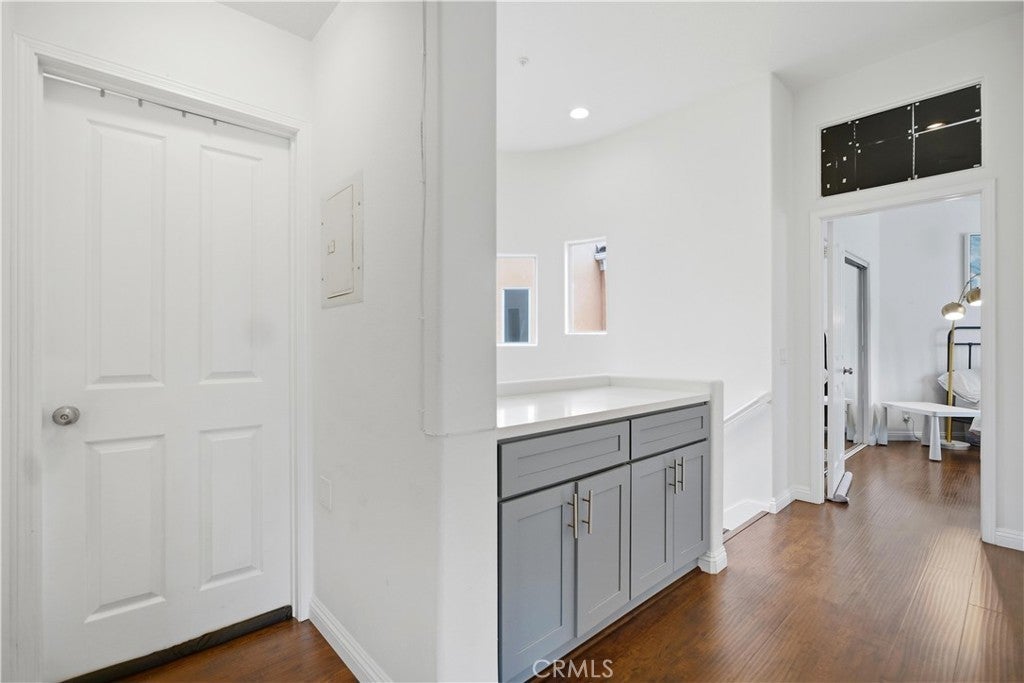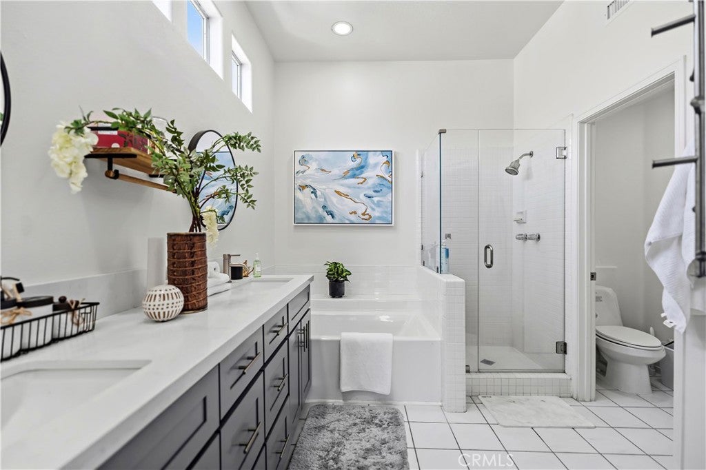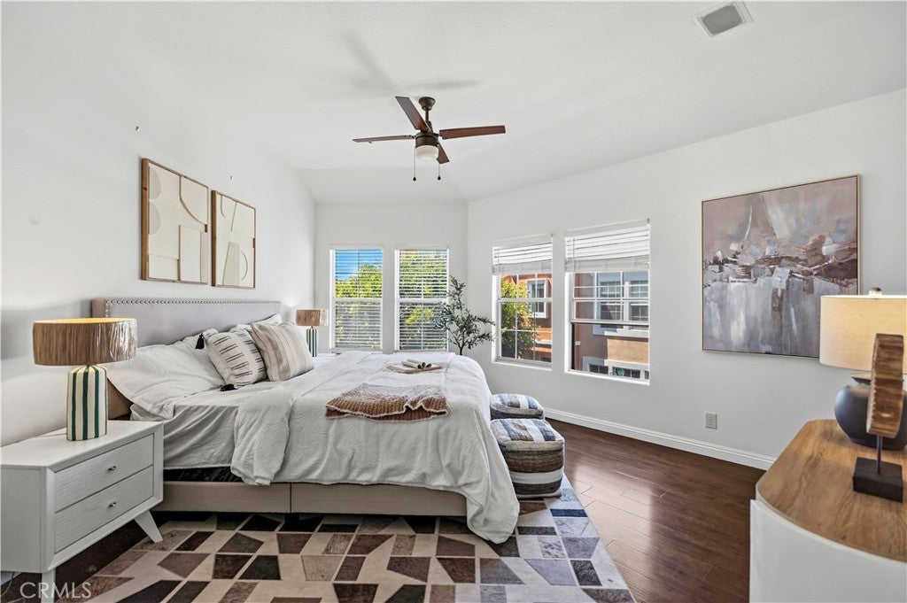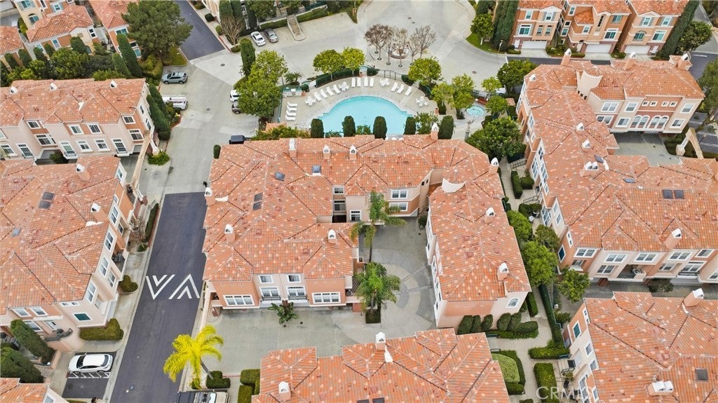 Welcome to Westpark Corte Bella, a gated Mediterranean-style community in the heart of Irvine. This corner unit with pool views offers three bedrooms and two and a half bathrooms. The open-concept living area includes high ceilings and abundant natural light throughout the home. The kitchen features contrasting cabinetry and white quartz countertops, along with separate living and family rooms. The patio overlooks the community pool and provides an outdoor space for everyday use. All bedrooms are located upstairs. The primary bedroom includes multiple windows and an en-suite bathroom. Two additional bedrooms are situated on the opposite side of the hallway and share a full bathroom. Community amenities include a pool, spa, BBQ area, courtyard, fountains, and additional common areas.