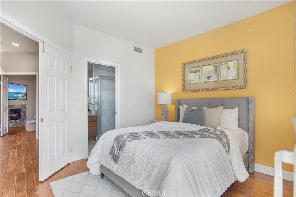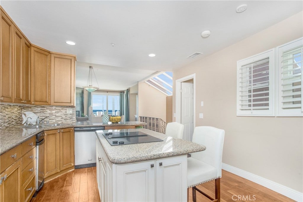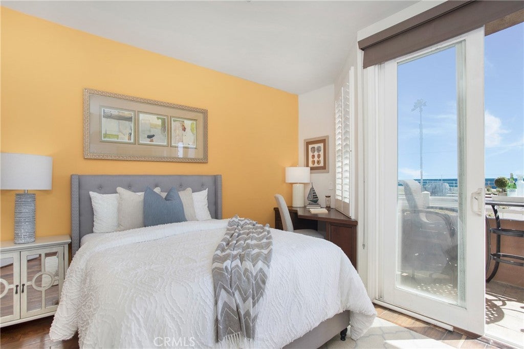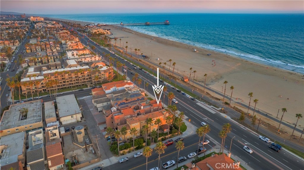 RARE coastal opportunity with unobstructed ocean views just steps from the sand! This 2 bedroom, 2.5 bathroom condo offers the ultimate beach lifestyle in an unbeatable location. Entry level features a spacious primary suite with walk-in shower, dual sinks, vanity, and walk-in closet, plus a second ensuite bedroom with tub/shower combo and private ocean-view balcony. Upstairs, the light-filled living area flows seamlessly from kitchen to dining to living room — perfect for entertaining or cozy nights by the fireplace. Enjoy a wet bar with wine fridge, solid wood flooring, and direct access to a balcony and private rooftop sundeck with stunning sunset views. The kitchen features stainless steel appliances, granite countertops, ample cabinetry, and a walk-in pantry/utility closet with a washer and dryer. Dual-pane windows are installed throughout for efficiency and quiet. Secure gated access includes a one-car garage, one assigned space, and private guest parking. Located directly across from beach access and within walking distance to the Huntington Beach Pier, Pacific City, and downtown dining and entertainment. An ideal opportunity for a primary residence, vacation home, or investment.