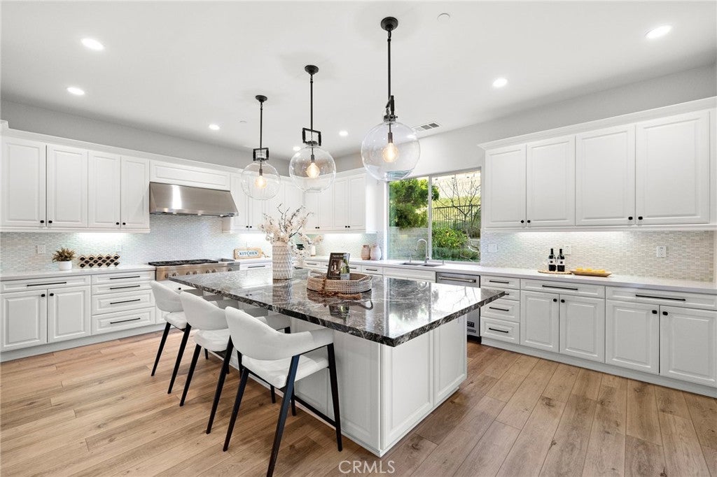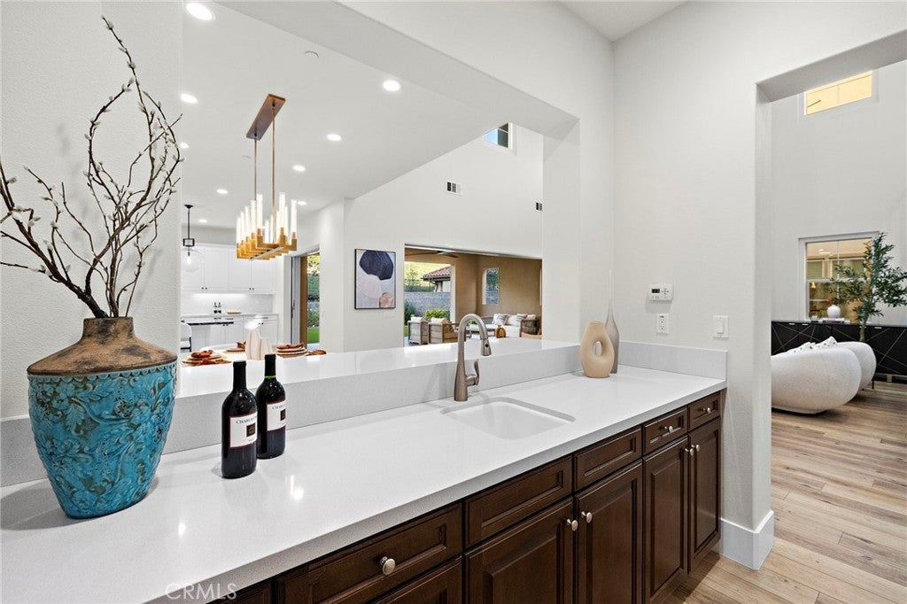 Located in the prestigious gated community of the Oaks at Portola Hills, this beautifully upgraded home offers an exceptional blend of scale, comfort, and modern design. Spanning approximately 3,823 sq ft, the residence showcases dramatic two-story ceilings and an expansive great room that opens effortlessly to the backyard through dual bifold glass doors, creating seamless indoor-outdoor living. The chef’s kitchen is designed for entertaining with an oversized island, premium JennAir appliances, and a fully equipped butler’s pantry. The flexible floor plan includes 4 bedrooms, 4.5 baths, and a spacious loft, with a desirable main-level ensuite ideal for guests or multigenerational living. The luxurious primary suite offers a spa-like bathroom and an oversized walk-in closet. Recent upgrades include designer finishes, updated flooring, and fresh interior paint. The private backyard is finished with low-maintenance landscaping and synthetic turf for easy enjoyment. Fully paid solar enhances efficiency. Residents enjoy access to resort-style amenities including pools, parks, sports fields, scenic trails, and clubhouse facilities, all conveniently located near shopping, dining, and major transportation corridors.