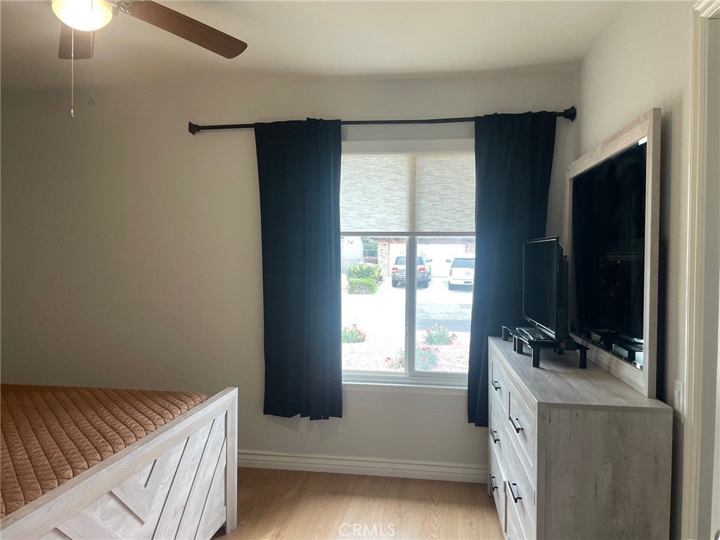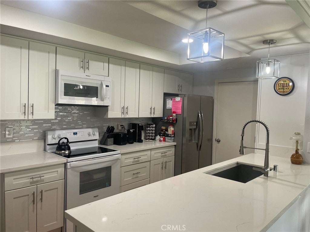 Welcome to easy, elegant living in this beautifully remodeled single-story home located in a desirable 55+ senior community. Designed for comfort, convenience, and efficiency, this move-in ready residence offers modern upgrades and spacious living areas perfect for relaxing or entertaining. Step inside to find attractive laminate flooring and dual-paned windows throughout, creating a bright and energy-efficient environment. The thoughtfully updated kitchen features crisp white shaker cabinetry, sleek quartz countertops, a large stainless steel sink, and ample prep space—ideal for everyday cooking and hosting family and friends. The home offers both a formal living room and a separate family room, providing flexible space to suit your lifestyle. The generously sized primary bedroom includes two closets and electronic window shades for added comfort and privacy. The secondary bedroom features a walk-in closet, making it perfect for guests or a home office. Both bathrooms have been tastefully remodeled with white shaker-style vanities, white countertops, and tile flooring, delivering a clean, timeless finish. Additional highlights include a direct-access two-car garage for convenience and storage, as well as an expansive backyard designed for low-maintenance enjoyment. The backyard features a covered patio, artificial turf and beautiful palm trees, creating a private, resort-style setting ideal for outdoor relaxation or entertaining. This all-electric home is powered by 22 fully paid off solar panels, providing exceptional energy efficiency and long-term savings. Enjoy the best of active adult living in a welcoming 55+ community with a home that truly has it all—style, comfort, and sustainability. Sun City Civic Association is truly resort style living with many amenities. Check out their website at www.suncitycivic.com for more information.