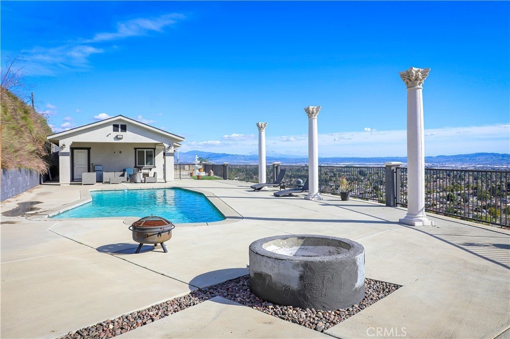 This home is a peaceful hillside retreat while still staying connected to the city. Welcome to 449 Skylark Dr. It's a open modern ranch home with a conventional floor plan. For those that love to cook, enjoy entertaining in the kitchen. It has a large center island that is the center focal point to the living room. You'll have two master suites, one at one end and another at the other end of the home. A Jack and Jill bathroom connecting to guest bedrooms and easy access to laundry on both ends of the home. Other special features inside are every bedroom has it's own glass door to view and that exits to the backyard. When you can't wait to jump in the in swimming pool you will be surrounded by the stunning city vistas—creating a backdrop that feels straight out of a postcard. Located in one of San Bernardino’s hillside neighborhoods, this home combines natural beauty with everyday convenience. There is a poolside bathroom with shower to keep the party outside. Once your done swimming or just need a break, stay for a little longer outside and lounge around the gas fire pit and covered patio. Once your done swimming or just need a break, stay for a little longer outside and lounge around the gas fire pit and covered patio. Perfect for evening gatherings, early morning sunrises and keep the party going to the evening sunsets. Your not done yet.... sip on a glass of wine under the stars for a nightcap and watch tv in the built in lift cabinet. Residents love the area for its quiet, established feel, and proximity to outdoor recreation—from hiking trails to local parks—while still being minutes from shopping, dining, and essential services. Just south of Arrowhead Springs, 20min from SBD, 1hr from Big Bear, 25min from Glen Helen Amphitheater. So much to explore in San Bernardino Desert area nearby!