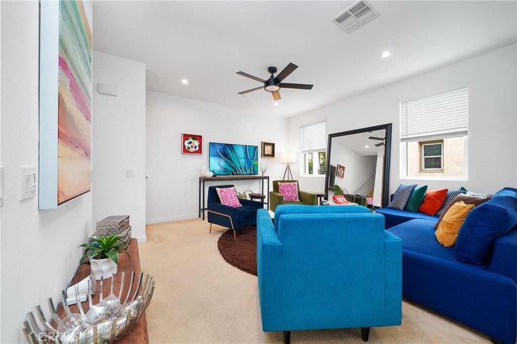 Discover this beautifully maintained 3-story home in the heart of Irvine’s highly desirable C2E community. Boasting 2 bedrooms, a versatile office, and 2.5 bathrooms across 1,414 sq ft, this residence combines style, comfort, and convenience for modern California living.Property tax is only 1.06% .Step inside to luxurious composite wood flooring on the first and second floors, while the third-floor bedrooms are carpeted for warmth and comfort. The spacious open-concept living areas are flooded with natural light, creating an inviting atmosphere perfect for family gatherings or entertaining friends.The dining room opens to a balcony, offering a serene spot for morning coffee or evening relaxation. The kitchen and living spaces flow seamlessly, making everyday life effortless.Upstairs, the bedrooms provide privacy and tranquility, while the office offers a flexible space for remote work, study, or hobbies.Enjoy California’s indoor-outdoor lifestyle in the community with amenities including a sparkling swimming pool, BBQ area, and playground—perfect for family fun and social gatherings.This home also features a two-car garage and is ideally located just a 10-minute drive to UCI, within walking distance to Jamboree Plaza, and only 10 minutes to The District and South Coast Plaza. Everything you need—from shopping and dining to top-rated schools in the Irvine Unified School District—is within reach. A rare opportunity to own a stylish, move-in ready home in one of Irvine’s most vibrant and convenient communities. Don’t miss your chance!