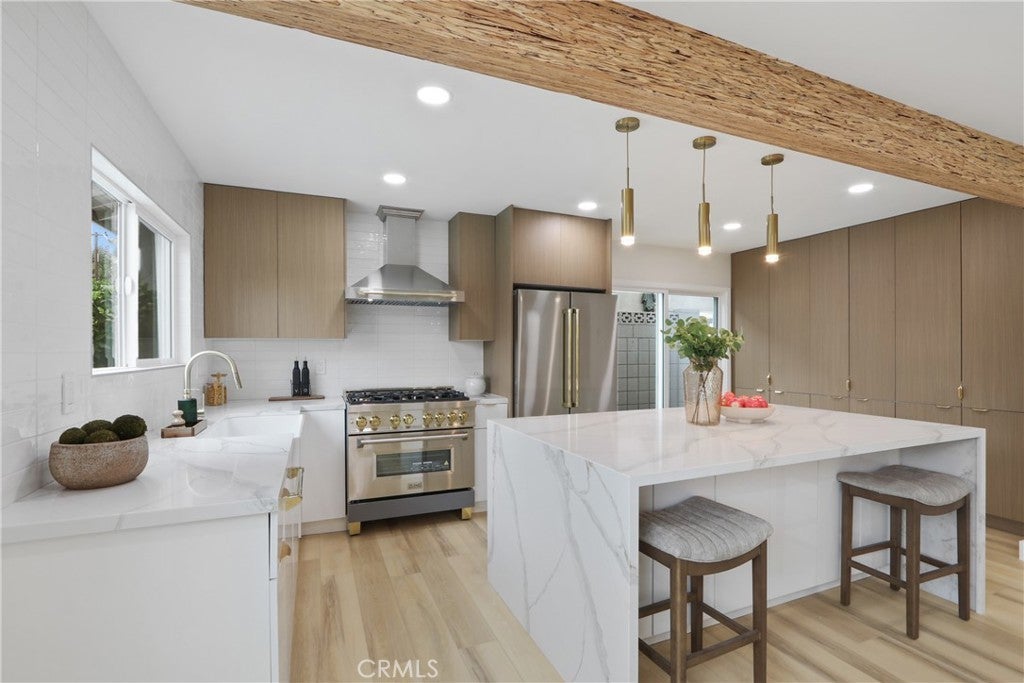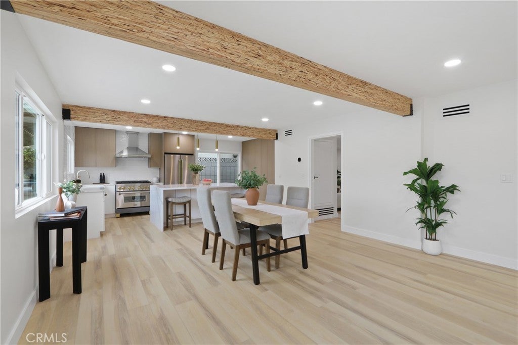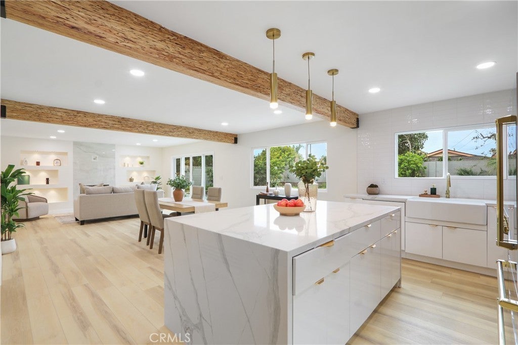 Welcome to this stunning fully remodeled pool home in the heart of Orange, located in a highly sought-after neighborhood. This expansive 5-bedroom, 3-bathroom residence has been thoughtfully redesigned to deliver modern elegance, comfort, and versatility—ideal for today’s lifestyle. Upon entry, you’re greeted by a grand foyer featuring new luxury vinyl flooring throughout, recessed lighting, and a seamless floorplan. The formal living and dining rooms are filled with natural light from large windows, creating inviting spaces for gatherings and entertaining. The fully remodeled kitchen is a chef’s dream, showcasing quartz countertops, custom cabinetry, and stainless-steel appliances. Designed for both style and functionality, the kitchen flows seamlessly into the open family room, complete with a fireplace and direct access to the backyard—perfect for indoor-outdoor living. The home offers a flexible and spacious layout with generously sized bedrooms, including a room conveniently located on the first floor, ideal for guests, multigenerational living, or a home office. Upstairs, the expansive primary suite features a spa-inspired bathroom and plenty of closet space. All three bathrooms have been beautifully updated with modern finishes, including the downstairs bathroom with a shower, spa and direct access to the backyard—perfect for pool use. The backyard is a true retreat and entertainer’s dream. Enjoy the sparkling pool and ample space for lounging and relaxation. Situated in a peaceful and desirable neighborhood, this move-in-ready home offers a rare combination of space, style, and functionality. An exceptional opportunity to own a fully remodeled home in Orange—schedule a showing today!!