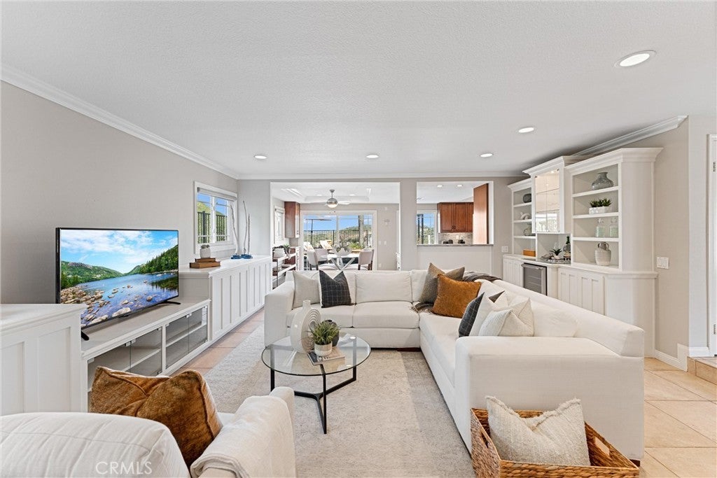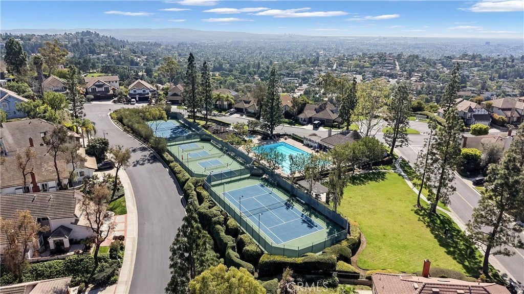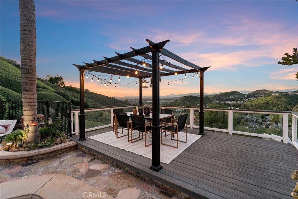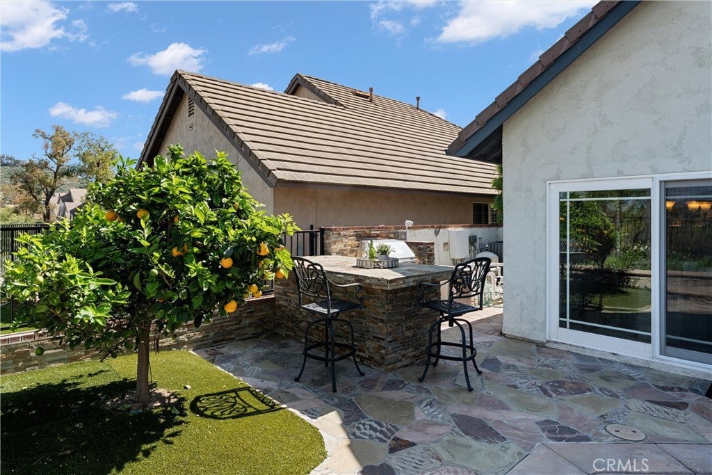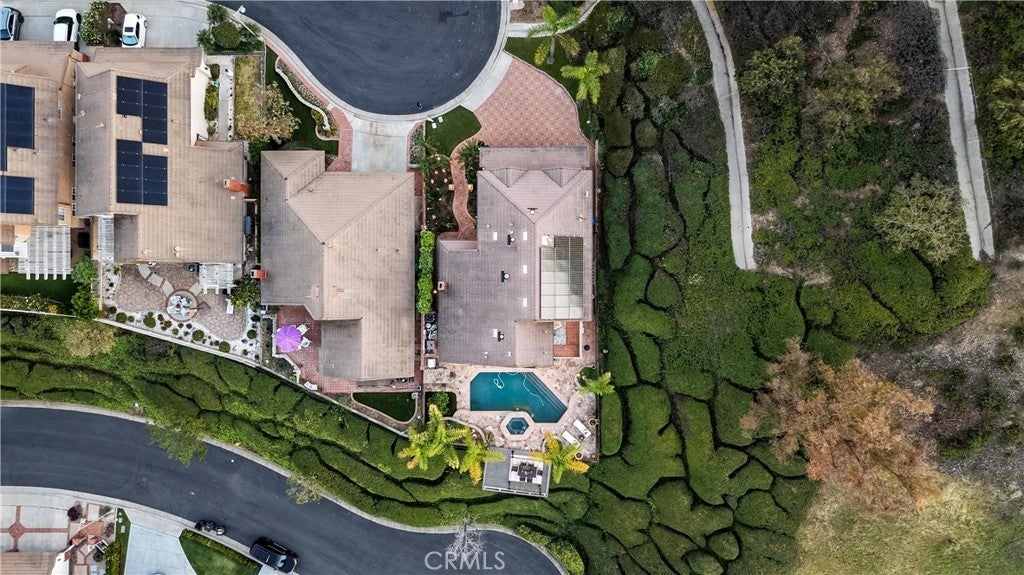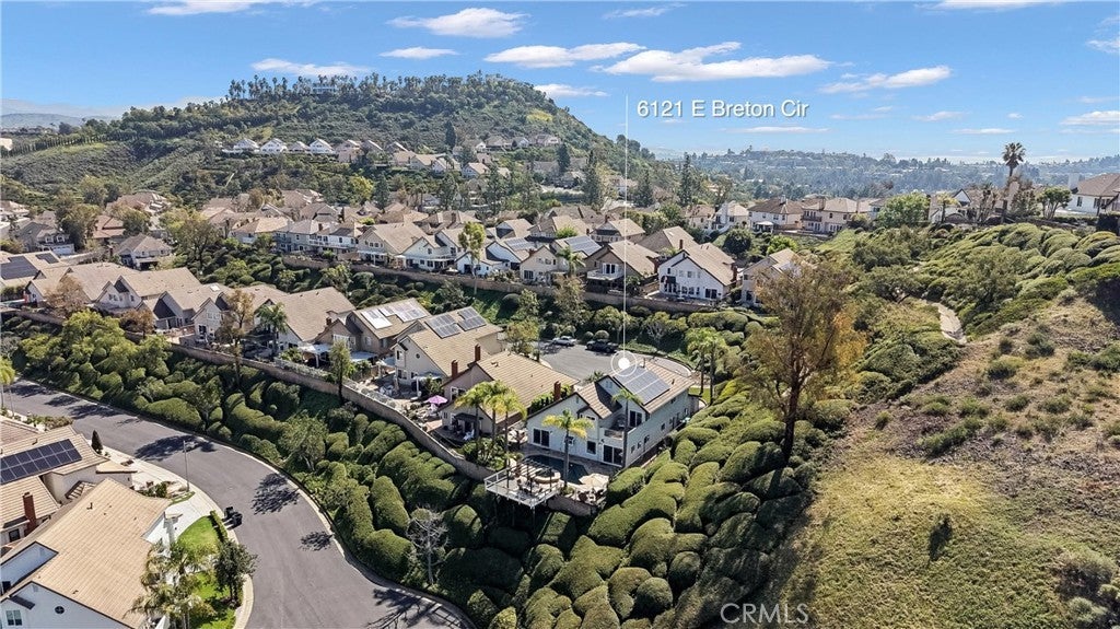 Experience this beautifully maintained hillside retreat at the end of a quiet cul-de-sac in the prestigious, guard-gated community of Rocking Horse Ridge. This 4-bedroom, 2.5-bathroom home offers sweeping views of the surrounding hillsides, city lights, and the scenic Santiago Creek Basin below. Step inside to dramatic high ceilings and a formal living room with fireplace. The open floor plan flows naturally into the dining area, creating an intimate setting for everyday meals while remaining ideal for larger gatherings and entertaining. The home continues into the spacious family room, complete with a dry bar, wine fridge, and wall-to-wall built-ins that provide generous storage and display space. This oversized living area connects seamlessly to the breakfast nook and kitchen, creating a comfortable central hub of the home. The kitchen features an island, stacked oven and microwave, gas range, charming window seat, and a convenient built-in desk area, all positioned to take advantage of the surrounding views and patio access. Outdoors, the backyard offers a private retreat designed for both relaxation and entertaining. Enjoy the pool and spa, built-in BBQ and outdoor kitchen, and a veranda-covered dining area overlooking the scenic hillsides and city lights. The beautifully landscaped yard also features a thriving fruit tree, adding to the peaceful outdoor setting. Upstairs, the primary suite serves as a tranquil retreat, featuring a balcony, spacious bathroom with dual vanities and a walk-in closet. Three additional bedrooms provide flexible space for family, guests, or a home office and share a well-appointed bathroom. Additional highlights include owned solar panels and a 3-car garage with large driveway for additional parking. Residents of Rocking Horse Ridge enjoy resort-style amenities including a Junior Olympic-sized pool and spa, tennis and pickleball courts, clubhouse, playground, greenbelts, and scenic ocean-view lookouts, along with a calendar of community events. Ideally located with convenient access to freeways and toll roads, the neighborhood is just minutes from shopping, dining, entertainment, Old Town Orange, outdoor recreation at Irvine, Santiago Oaks, and Peters Canyon Regional Parks. This home is a must-see opportunity to enjoy tranquility, scenic views, and elevated living in one of Orange County’s most desirable gated communities.