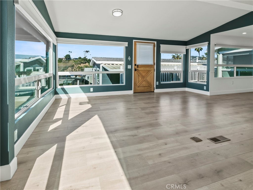 Picture yourself living at the beach in this stunning 2 bed/2 bath home in Capo Beach Cottages! This beauty is perfect for cozy nights by the fireplace or entertaining on the large deck space. Vast ocean views and salt air abound from the multitude of large windows and high ceilings throughout. Primary ensuite and a second bedroom that is ocean facing and roomy enough for guests, an office and/or craft room. Remodeled bathrooms and kitchen, and updated appliances and flooring. Walk-in storage shed. Capo Beach Cottages is a coastal lifestyle community for age 55+ with a private beach, year-round heated saltwater pool, pickleball courts, and clubhouse that includes a full kitchen, billiards, ping pong, television and shared library. Come and see why life is better at the beach!