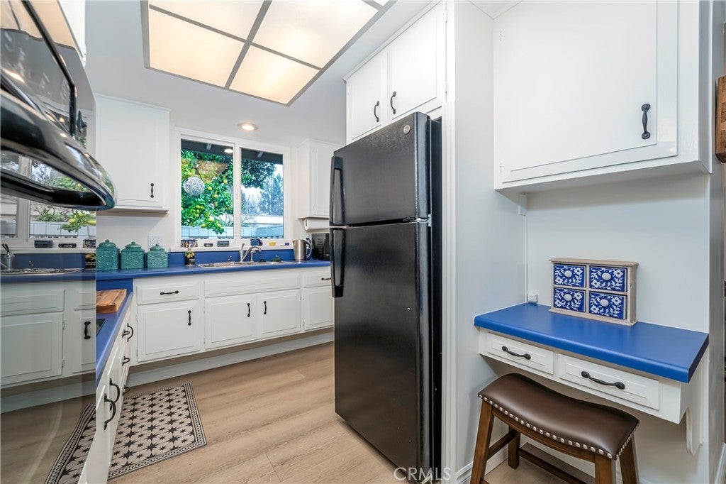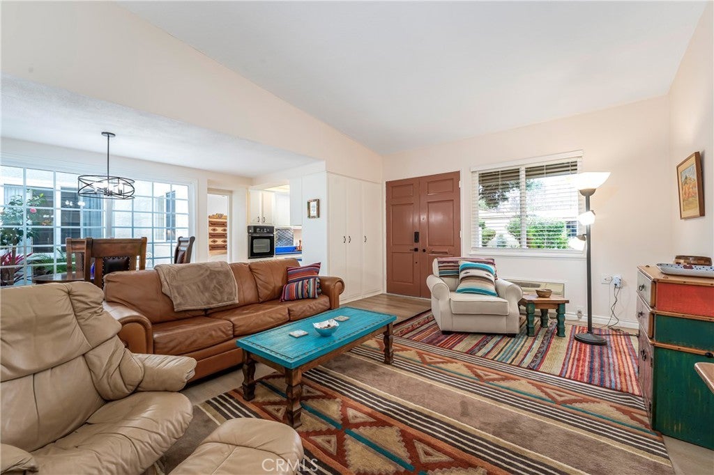 Welcome to this beautifully furnished Granada model in Laguna Woods Village, one of South Orange County’s premier 55+ communities. Available for short-term lease from April 6th to September 30th. This charming two-bedroom, two-bathroom home offers comfort, style, and resort-worthy amenities just minutes from Laguna Beach, shopping, and award-winning restaurants. Inside, vaulted ceilings and abundant natural light highlight the home’s distinctive Southwestern-inspired décor. Durable vinyl plank flooring and natural wool rugs run throughout. The spacious living room includes a new 65-inch TV, comfy leather sofa and lounger, and an open layout ideal for entertaining or relaxing. The dining area features a Santa Fe-style wooden pedestal table for four, next to a tiled open-air atrium with a ceramic fountain and a bistro set, perfect for morning coffee. Dual-pane windows and doors enhance comfort and efficiency throughout. The cheerful kitchen is designed for convenience, featuring newer countertops, updated appliances, and a portable dishwasher. Complete sets of cookware and dishes are ideal for everyday living or extended stays. Ready for gourmet cooking or vacation-style use, the kitchen has a microwave, food processor, stand mixer, electric kettle, coffee maker, and more. The guest bedroom features a stylish queen-size Murphy bed, a large closet, and flexible space for visitors or a home office. The updated bathroom features ample counter space and a refinished soaking tub with a glass-enclosed shower. The primary bedroom features a dramatic queen-sized bed, a smart TV, a roomy closet, and a separate heating and air-conditioning unit. Linens and towels are 100% cotton for added comfort. A private en-suite bathroom includes a walk-in shower. Outside, enjoy a private patio finished with Mexican tile, an outdoor table for four, and mature lemon trees that add charm and fragrance to the outdoor space. A removable wheelchair ramp makes the home fully accessible. Residents of Laguna Woods Village enjoy access to golf courses, pools, fitness centers, tennis and pickleball courts, clubhouses, art studios, social clubs, and 24-hour gated security. This vibrant 55+ community is centrally located in South Orange County near medical facilities, coastal recreation, and the beaches of Laguna Beach. Move right in and enjoy the best of active adult living in Laguna Woods.