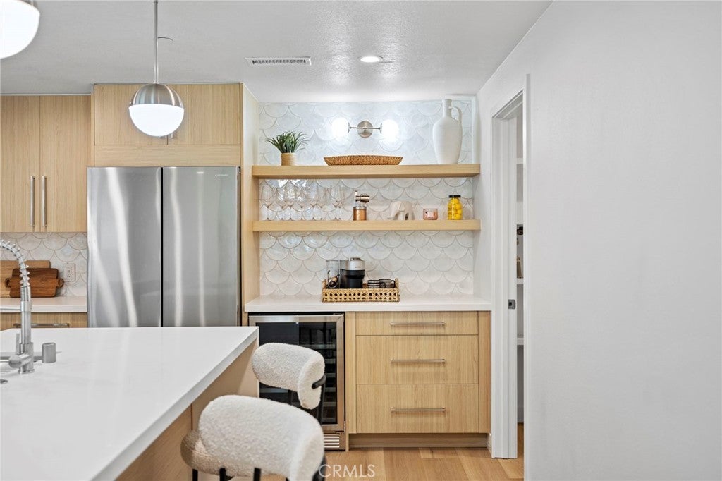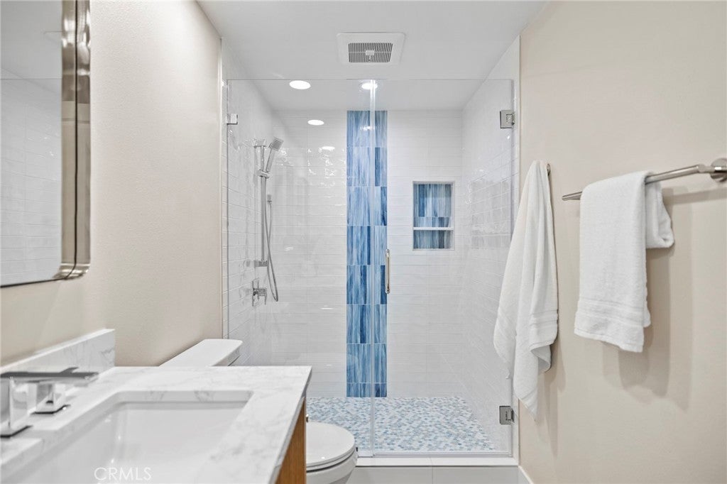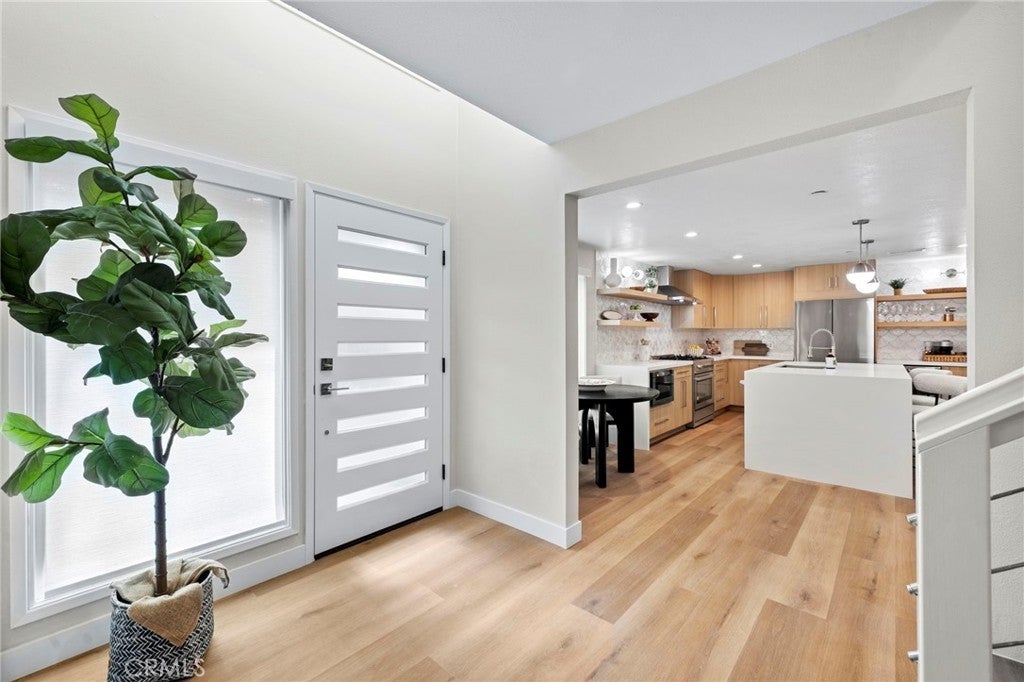 "$200,000 PRICE REDUCTIO" Experience elevated coastal living in this completely remodeled, luxury 3d, 2½-bath townhome featuring breathtaking ocean views from all three private balconies. This stunning residence has been thoughtfully upgraded with high-end finishes, designer details, & modern conveniences to create a sophisticated yet comfortable retreat. Step inside through the custom-designed front door and immediately appreciate the bright, open layout with all-new windows, doors, flooring, and LED lighting throughout. The main living area showcases a redesigned family room centered around a new fireplace, creating the perfect ambiance for relaxing evenings while enjoying the ocean breeze. Just off the living room is a balcony offering sweeping ocean views—ideal for morning coffee or sunset gatherings. The gourmet kitchen is a true showpiece, designed for both everyday living and entertaining. Featuring custom cabinets, sleek Quartz countertops, a spacious center island with breakfast bar seating, and premium stainless-steel appliances including a brand-new refrigerator, stove/oven, microwave, dishwasher, under-counter wine refrigerator and a walk-in pantry. Adjacent to the kitchen is the formal dining room that provides an elegant setting for hosting dinner parties or intimate meals with family and friends. The primary suite features a custom fireplace, walk-in closet & direct access to a private ocean-view balcony. The spa-inspired primary bathroom is complete w/ marble countertops, soaking tub, walk-in shower w/ marble accent tiles and dual vanity sinks. Every detail has been carefully curated to provide both beauty & comfort. One of the two secondary bedrooms has its own private balcony w/ocean views. The remodeled secondary bathroom includes dual vanity sinks and a spacious walk-in shower w/upgraded designer glass tiles. A convenient walk-in laundry room is also located on this level and includes a brand-new washer & dryer. The guest powder room features a marble tile accent wall, stunning custom vanity completed by hanging light fixtures and a touch light mirror that leaves a lasting impression. Additional highlights include a new custom staircase, pex plumbing throughout and a two-car garage. From top to bottom, this townhome reflects superior craftsmanship and luxury upgrades at every turn. This exceptional property delivers the ultimate in coastal elegance and modern living. This is a rare opportunity to own a turnkey ocean-view townhome.