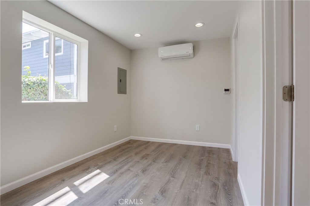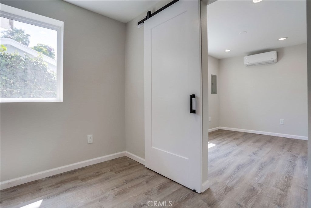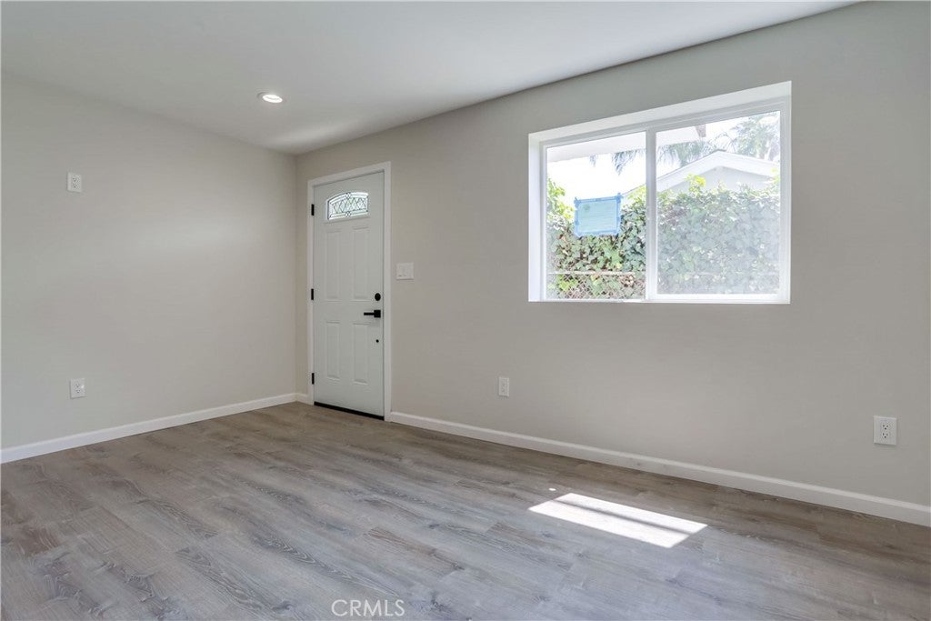 Gorgeous and beautifully updated throughout, 1 bedroom, 1 bath, privately located unit with 1 assigned covered carport centrally located in the beach paradise of San Clemente. Within walking distance of downtown San Clemente, dining, shops, entertainment, and close to picturesque San Clemente Pier and world-famous beaches. Beautifully designed with an open concept floor plan, updated doors and windows, gorgeous wood laminate floors, upgraded recessed lighting, newer fixtures and hardware, wide baseboards, and newer mini-split AC/Heating unit, all creating the perfect living environment. Sleek and modern interior design, the living area is open to the amazing kitchen with a gorgeous subway tiled backsplash, plenty of storage and countertop space, sleek stainless-steel appliances, Quartz countertops, updated sink, fixtures, and faucet. Pass through the popular barn door feature to the bedroom which boasts a highly prized walk-in closet and a completely updated bathroom with Quartz topped vanity and sink, glass tile details, tile flooring, and a large walk-in shower with custom tile surround, glass tile details, and frameless glass shower enclosure. Blessed with a fully fenced private patio area perfect for relaxing and taking advantage of the cool ocean breezes. Refrigerator included. Water and trash paid by landlord. 1 assigned Carport space provided.