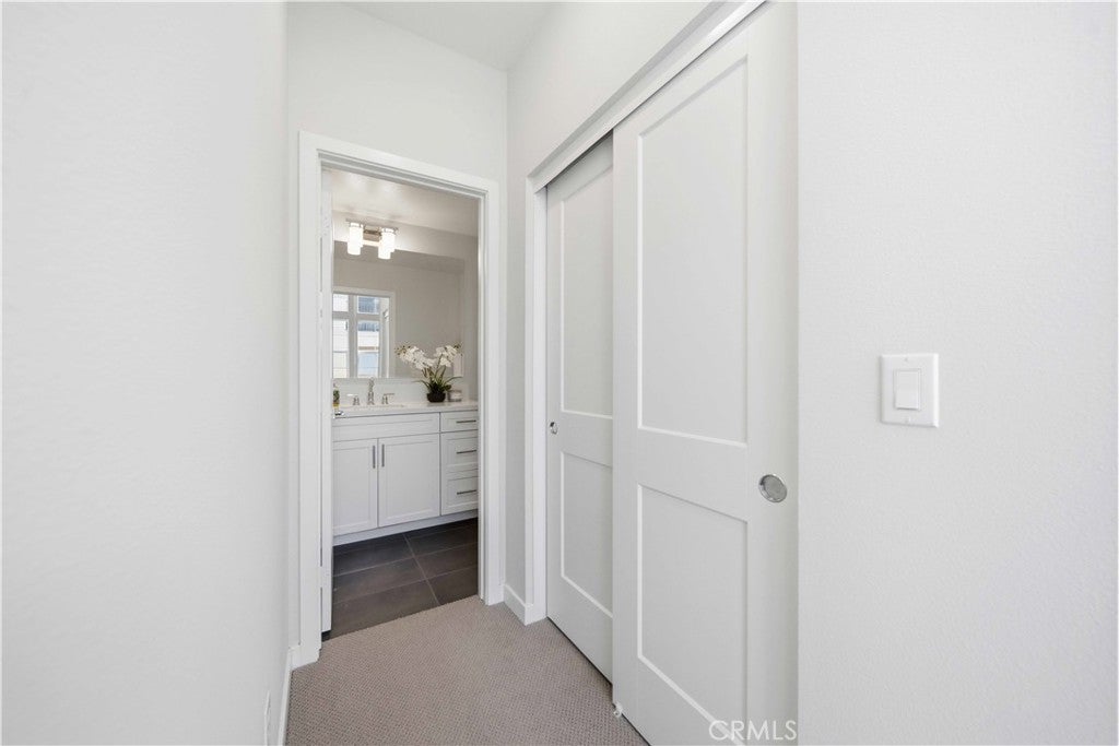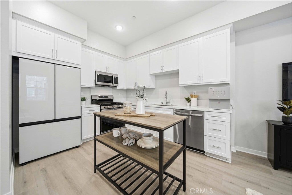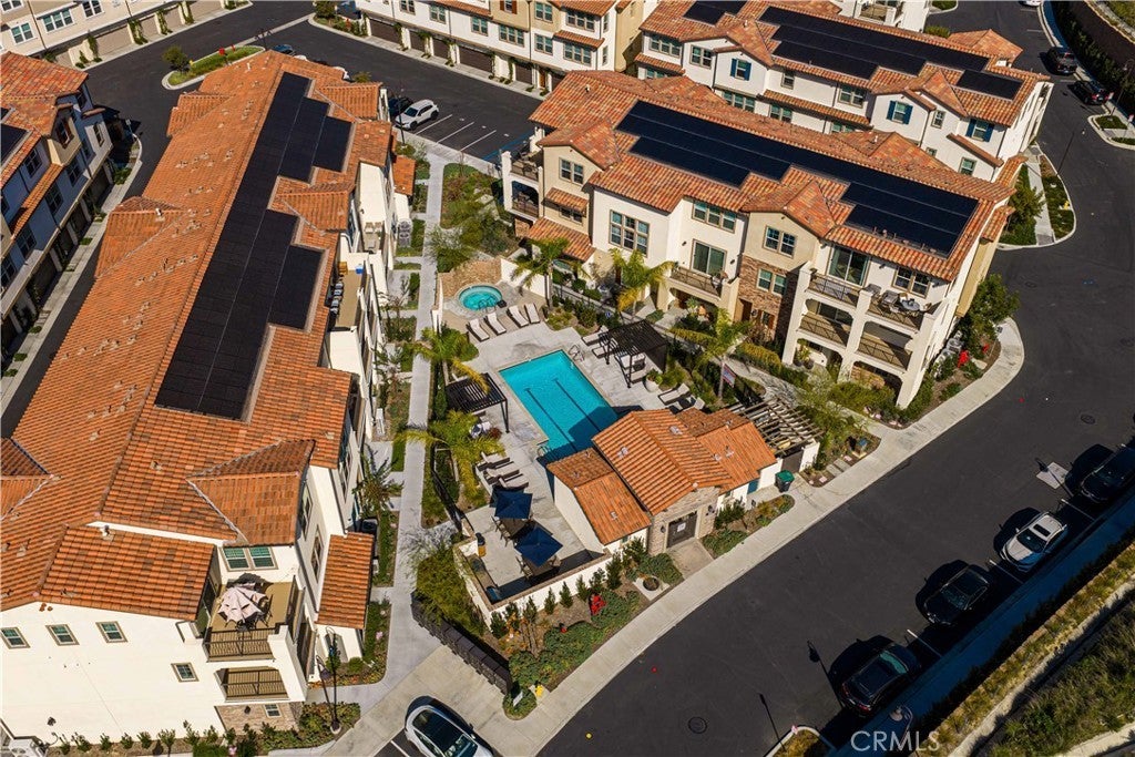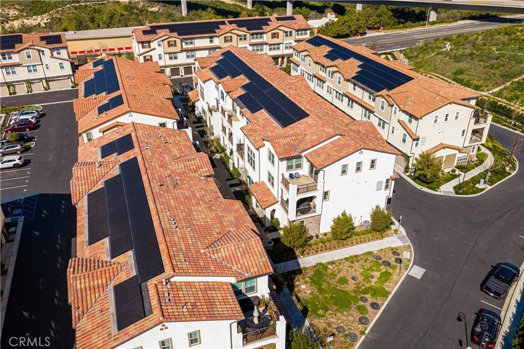 Welcome to 105 Lugo in Mission Viejo, a beautifully maintained, newer construction home built just about two years ago and proudly owned by its original owner. Located in the desirable Saddleback Place community by Trumark Homes, this modern residence offers the perfect blend of contemporary design, energy efficiency, and low-maintenance living. With approximately 887 square feet of thoughtfully designed space, the open-concept floor plan feels bright and spacious, enhanced by oversized dual-pane windows that fill the home with natural light. The main living area features wood-look luxury vinyl flooring, recessed lighting, and custom window treatments, creating a clean, sophisticated look. The kitchen is both stylish and functional, complete with stainless steel appliances, sleek countertops, white cabinetry, and seamless flow into the living and dining areas—ideal for everyday living and entertaining. Upstairs, plush upgraded Berber carpeting lines the staircase, hallway, and primary bedroom, adding warmth and comfort. The spacious primary suite is highlighted by dramatic 13-foot ceilings, creating an airy retreat with an open, light-filled ambiance. Built with today’s efficiency standards in mind, the home includes owned solar panels and a tankless water heater, offering long-term energy savings. An oversized one-car garage plus an additional dedicated parking space provide added convenience. Residents enjoy access to the community pool, spa, and BBQ area, perfect for relaxing or gathering with friends. Conveniently located near the 241 Toll Road, major freeways, shopping, and dining, this home delivers modern comfort in a highly desirable Mission Viejo location. 105 Lugo is a rare opportunity to own a nearly new, original-owner home that has been meticulously cared for from day one.