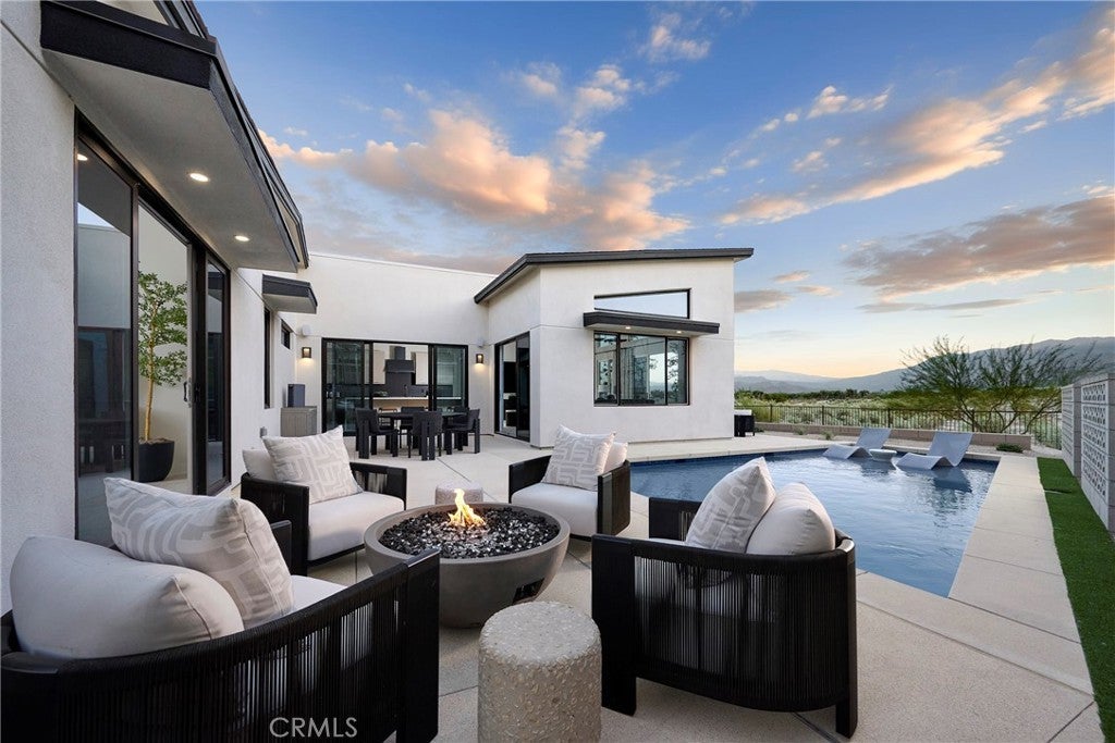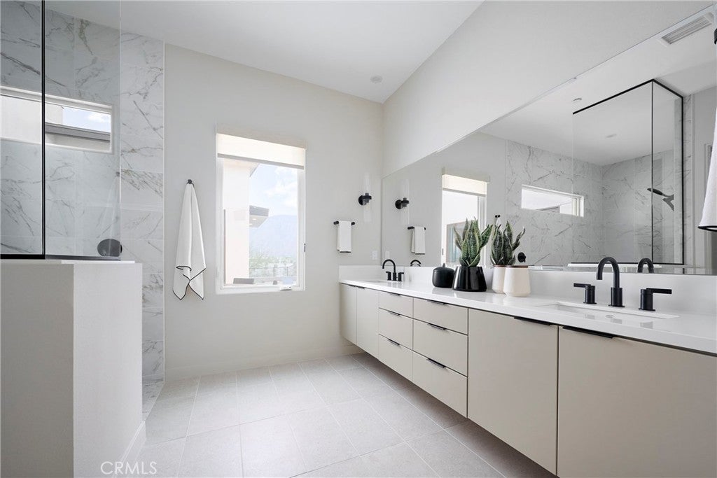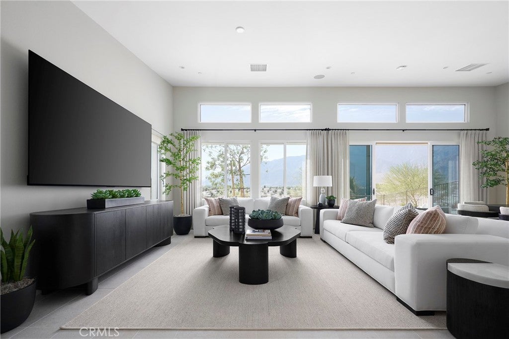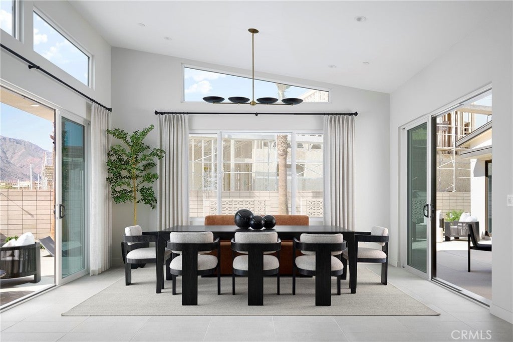 (Brokers Welcome ) (BUYER INCENTIVES ) Olea at Miralon new mid century modern homes. Miralon where life begins in Palm Springs. Single story 12 ft family room ceilings height, 3 bedrooms & 3.5 bathrooms, office. 20 x 12 private pool. 2-car garage, relax in your oversize lot for entertainment enjoyment. Gourmet Kitchen with Cafe Stainless Steel appliances package, Standard white Thermofoil cabinets throughout with concealed hinges and chrome handles. Beautiful Daltile one Quartz in Lucent white. Luxurious primary suites with floating cabinets large primary walk in closets with Quarte Lucent White with 6 " backsplash in primary bathroom & 4'' backsplash in all secondary's. This is where timeless design meets modern desert living. Miralon Association offers 97 acres of open space, 7 miles of walking trails. 3 dog parks and thousand of oil trees. Amenity center features state of the art fitness facility WIFI space, full service bar, chef demonstration kitchen resort style pool and spa with private clubhouse to enjoy. VIEW Orientation details: Framed mountain vistas that change color throughout the day. Southern orientation creating dramatic sunrise and sunset backdrops. Premium view lot minimizing rear neighbor visibility. Indoor/outdoor sight lines designed to pull natural beauty directly into living spaces. Golden hour patio moments that feel straight out of a luxury resort. Stargazing-ready outdoor living with minimal light interruption.