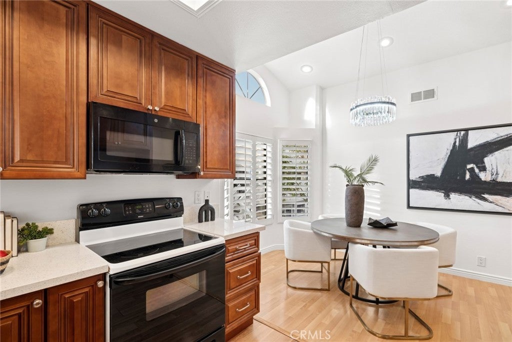 Discover “Horizon” in Northwood Irvine, Orange County – this beautifully updated 2-bedroom condo in the heart of Irvine offers a rare combination of comfort, style, and natural light throughout! Located in the highly desirable community, this home is perfect for first-time buyers, young professionals, or anyone seeking a bright, modern living space in one of Southern California’s most sought-after cities. Elevate your everyday in our rare CORNER LOT UPPER Unit with no units directly in front– your personal oasis with treetop + greenbelt views. The Limited-Edition home features 2BD, 2 BA, plus 1-CAR Garage, W/D Closet, private deck, and approximately 1,016 sq ft conveniently situated adjacent to Cypress Village Shopping Center and just minutes from Northwood Town Center, Northpark Plaza & Woodbury Town Center! Key & notable features include: Soaring high ceilings in the living room that create an open, airy atmosphere; Fully remodeled kitchen with updated cabinetry, countertops, and modern appliances; Freshly painted interior with updated light fixtures for a clean, contemporary feel; Abundant natural light throughout the home, with windows in every bedroom; Private patio access directly from the bedroom, ideal for morning coffee or evening relaxation; a Walkway patio that enhances outdoor flow and brings in even more sunlight, and is thoughtfully maintained and move-in ready! The home includes Luxury Vinyl Plank Flooring, NEW Interior Paint, NEW Ceiling Fans, Custom Fitted Plantation Shutters, & LED Recessed Lighting! Charming Kitchen with Maple Cabinetry, Breakfast Nook, & Complete with the following Appliances: Cooktop, Oven, Microwave, & Dishwasher! Sliding Door Access from Master Bedroom to Spacious Deck treetop + greenbelt views! This condo is exceptionally bright, inviting, and well-designed—perfect for buyers who value comfort and convenience. With its upgraded interior, high ceilings, and seamless indoor-outdoor access, it offers a lifestyle that feels both modern and peaceful. Enjoy Community Amenities—exclusive to Horizon residents—Pools, Spas, and BBQ Picnic destinations. Award-winning Irvine Unified School District (zoned Northwood High) and just minutes from Northwood Community Park, Hicks Canyon Community Park, Irvine Spectrum Center, Five Points Amphitheater, Jeffrey Trail, & the I-5 Freeway!