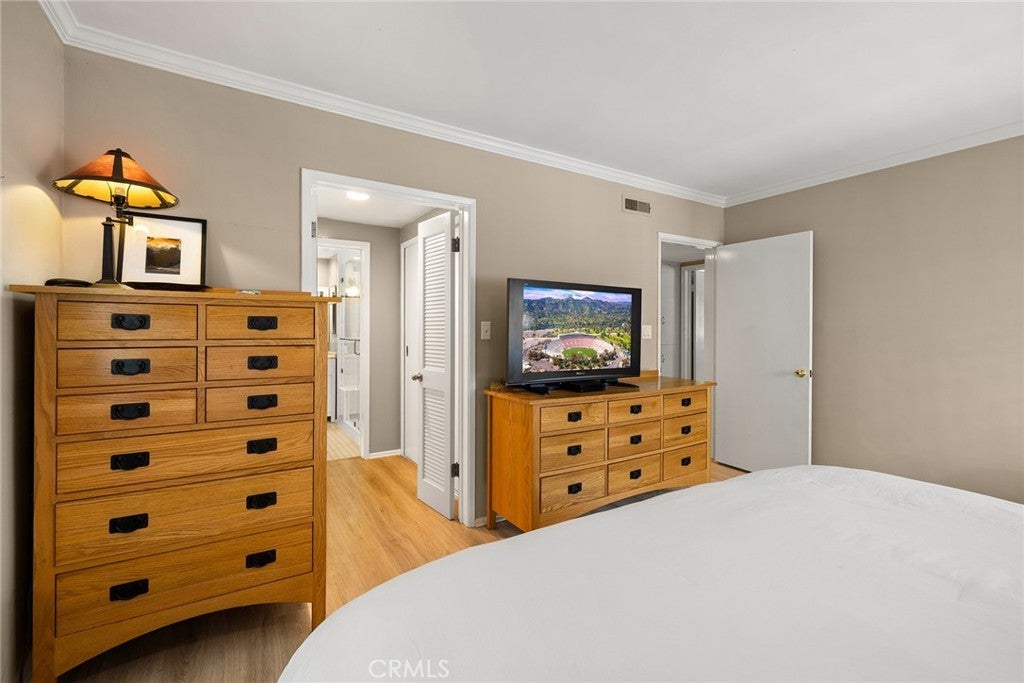 Welcome to 950 S Orange Grove Blvd #B. Top-floor 1,906-square-foot residence on Pasadena's Millionaires Row with three en-suite bedrooms. Oversized living room with enormous front window, crown molding, and built-ins connects to formal dining room with working fireplace. The two-way dry bar leads to the kitchen with six-burner stove, abundant cabinetry, newer tiled counters, and included appliances. Covered side-by-side parking spaces 34-35 with storage behind automatic gate—no tandem hassles. Two full bathrooms with built-in shower benches and pedestal sinks. Third bathroom features a half bath and Washer Dryer. Front-facing orientation maximizes light while top-floor positioning eliminates overhead noise entirely. Well-maintained grounds with mature landscaping, pool, and BBQ areas. The complete package: nearly 2,000 square feet, chefs kitchen with six-burner stove for serious cooking, designated side-by-side parking with storage, absolute top-floor quiet, and Millionaires Row address without typical condo compromises. This home is in the staging area for the Rose Bowl Parade so owners have upfront views of the festivities! Don’t miss this opportunity!