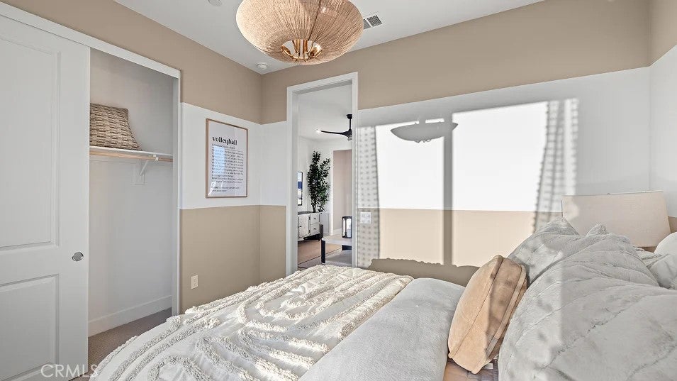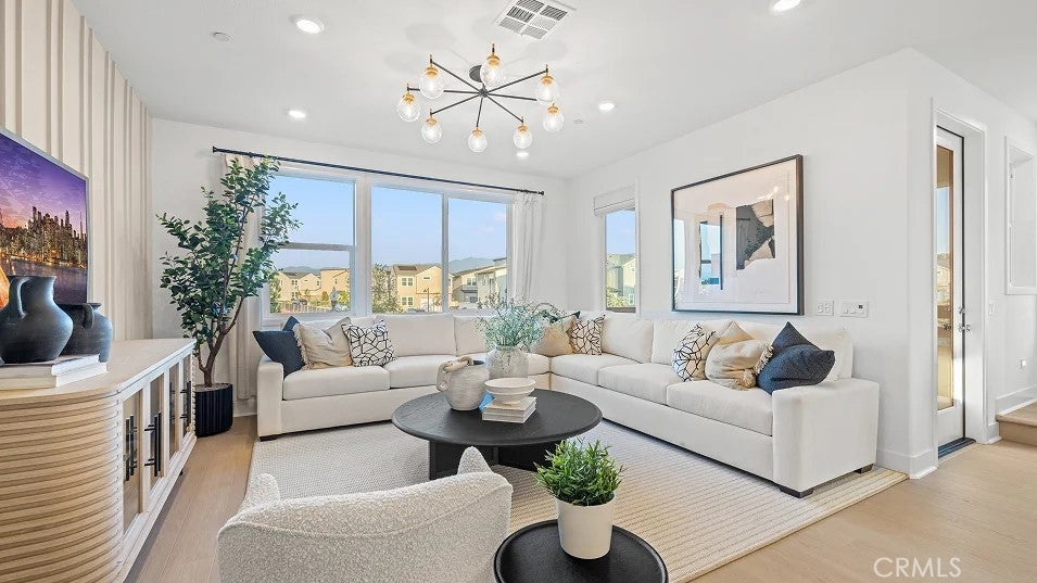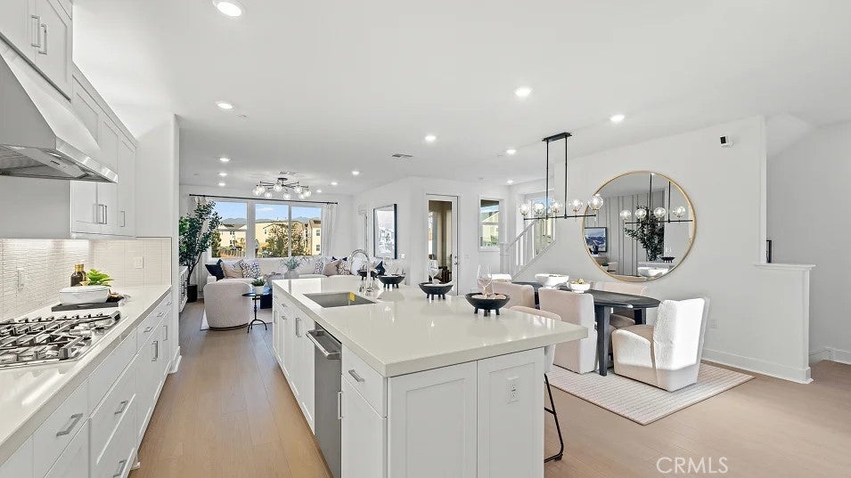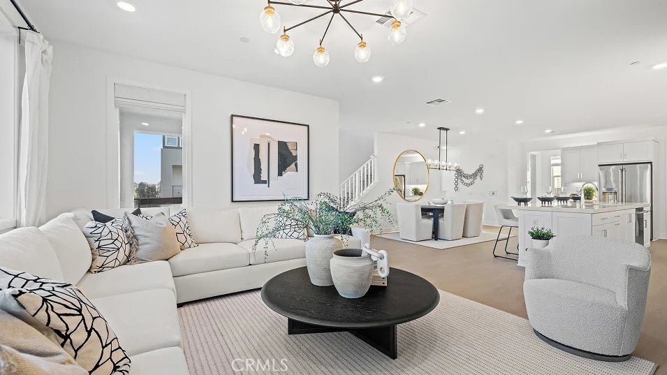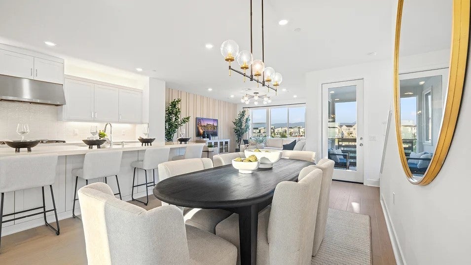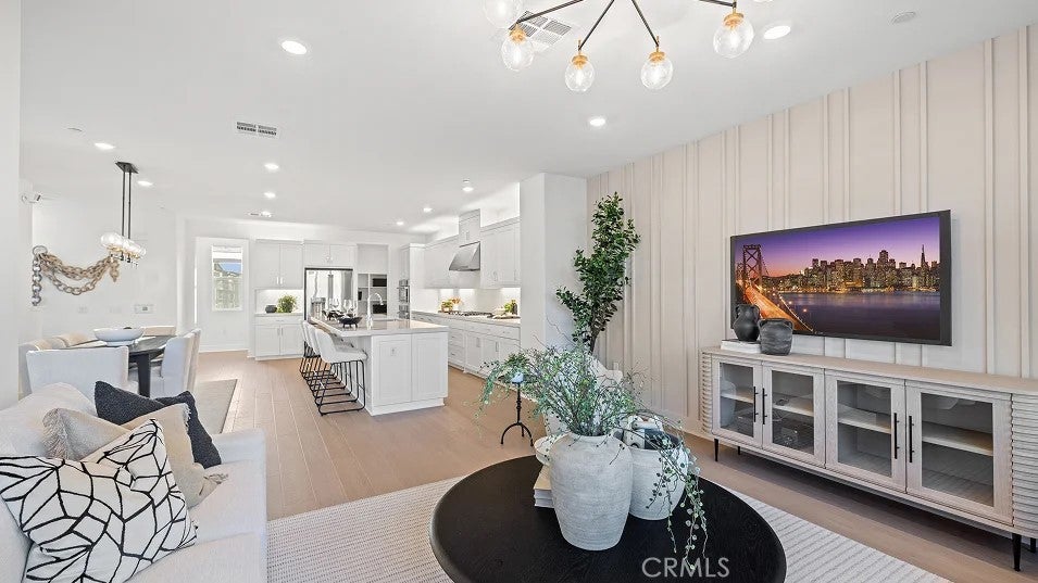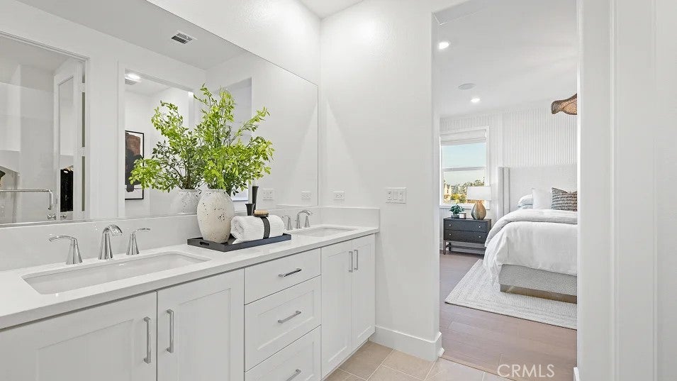 At Great Park's newest home collection RHEA, the plan 4 home features a rare dual primary suite layout, ideal for multi-generational living or a private home office. The second floor showcases an entertainer’s kitchen with an extra-long island, walk-in pantry, laundry room, and balcony. The third floor offers a spacious loft perfect for kids or media space, two secondary bedrooms, and a large primary suite. A flexible, well-designed home built for modern living. Just a short walk to a stunning 13-acre park. Beautiful and bright street-facing, CORNER location, offering easy guest parking.