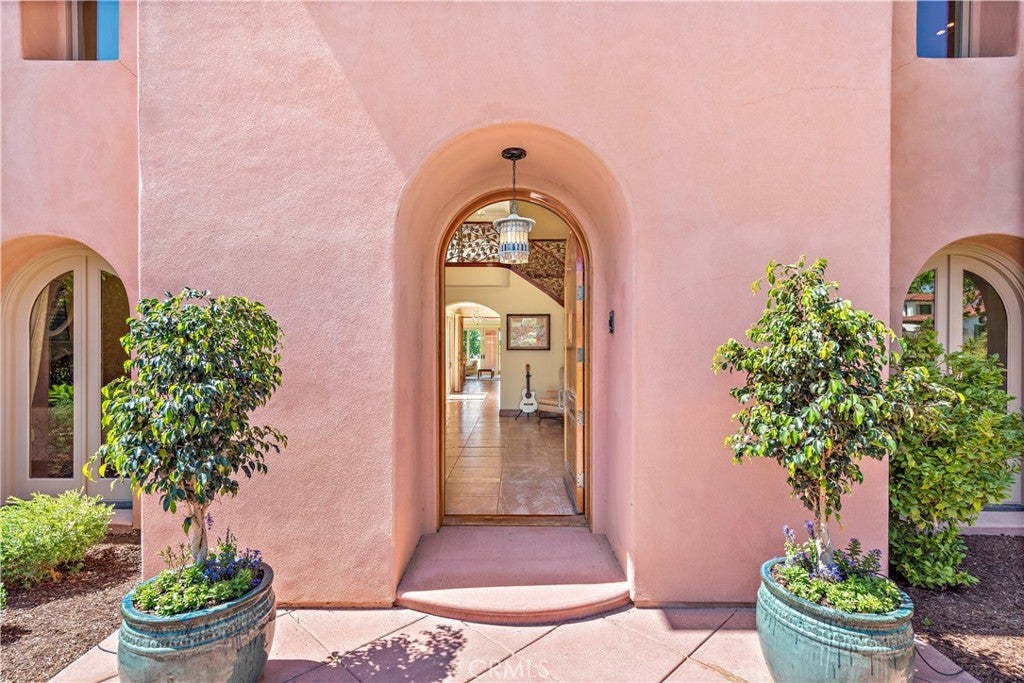 4060 Calle Isabella is a timeless Spanish Revival estate blending classic architecture with refined coastal living located behind the prestigious Cotton Point Estates gates. The exclusive double-gated enclave of Cotton Point at the southernmost tip of San Clemente is home to the historic Casa Pacifica. Residents enjoy a private beach trail with sweeping ocean vistas over world-renowned surf breaks and exclusive beach access through neighboring Cypress Shores. The quiet cul de sac street is home to only 16 estates to ensure peace and privacy. Step inside to admire hand-hewn beams, custom wrought iron, arched doorways, and artisan finishes create warmth and character throughout. Stucco walls, soft Mediterranean tones, and a red clay tile roof frame charming courtyards, a tranquil fountain, covered loggia, and lush landscaped grounds. The flexible multi-generational floor plan offers formal living and dining rooms with fireplace, two main-level bedrooms with two full baths, powder room, casual living space, and an expansive kitchen designed for gathering and entertaining. Upstairs features a bonus room, private office, laundry, two secondary bedrooms connected by a Hollywood bath, and a serene primary suite with ocean-facing deck capturing sea breezes and peek ocean views overlooking the impressive 18’ x 45’ pool and yard. Notable upgrades include mahogany pillars, radiant floor heating, Dutch doors, a dumbwaiter, fire suppression system, Loewen windows, Baldwin hardware, Blue Bahia and Blue Macaubas quartzite, Rosa del Monte marble, Honduran mahogany flooring, and Spanish Roja Alicante tumbled marble. A three-car garage and deep driveway provide ample parking. Just a few minute walk or bike ride to world class surfing at Trestles beach and easy access to Southbound and Northbound on ramps. Don't miss this rare opportunity to experience one of Southern California’s most prestigious coastal communities.